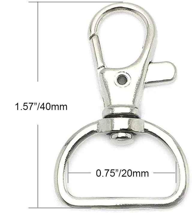 60Pcs 360° Metal Swivel Trigger Snap Hooks Lobster Claw Clasps, Wide 3/4 Inch D Ring, Large Size Keychain Hooks. The swivel snap hooks are 1.57” (40 mm) long and 3/4” (20 mm) wide. The package includes 60 heavy-duty swivel hooks made of premium stainless steel. These keychain hooks can be used for various DIY crafts, including making handbags, dog collars, straps, cat hammocks, puppy harnesses, keychains, belts, armor, tote bags, lanyards, and more. Each hook has a clip-on swivel hook and D rings for easy attachment. The lanyard hooks have a full 360-degree swivel lobster clasp for easy rotation. *30 bags available *Pickup Locations: Markham Road & 14th Avenue, Markham, or 500 Esna Park Dr, Markham. Thank you for your interest in these items. Please also have a look at my other items on sale