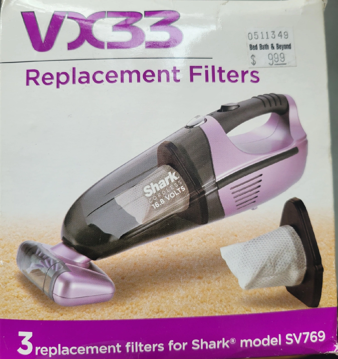Free for 2 replacement filters for your Shark cordless vacuum, model SV769! These are VX33 filters, originally bought for $9.99 at Bed Bath & Beyond. Keep your vacuum running smoothly!