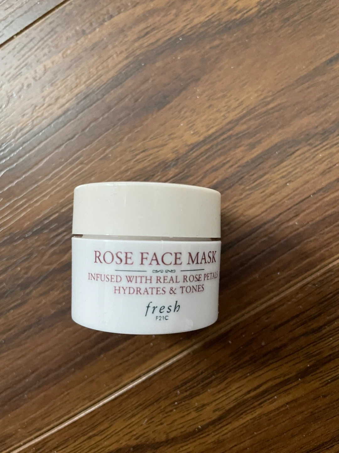 Fresh Rose Face Mask infused with real rose petals. It hydrates and tones the skin. This jar is a travel size. 15 ml