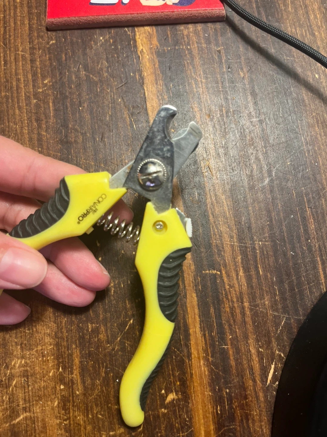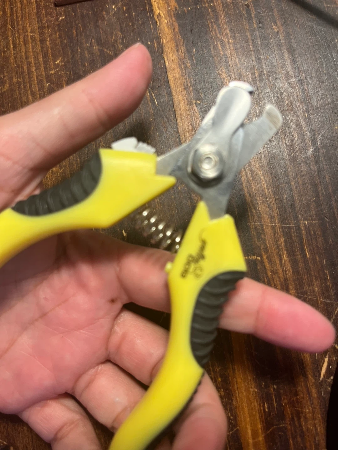 These are professional-grade pet nail clippers with yellow and black handles. They feature sharp stainless steel blades and a safety guard to prevent over-cutting. A built-in spring ensures smooth operation. These clippers are designed for home grooming use.