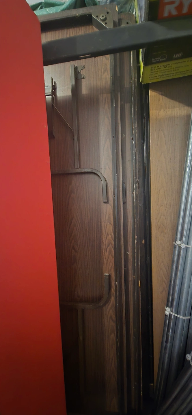 Selling a folding table with a brown wood-grain top and metal legs. It's in good condition and perfect for extra space when you need it! Easy to store when not in use. i got around 9 of them. buy it all for $350