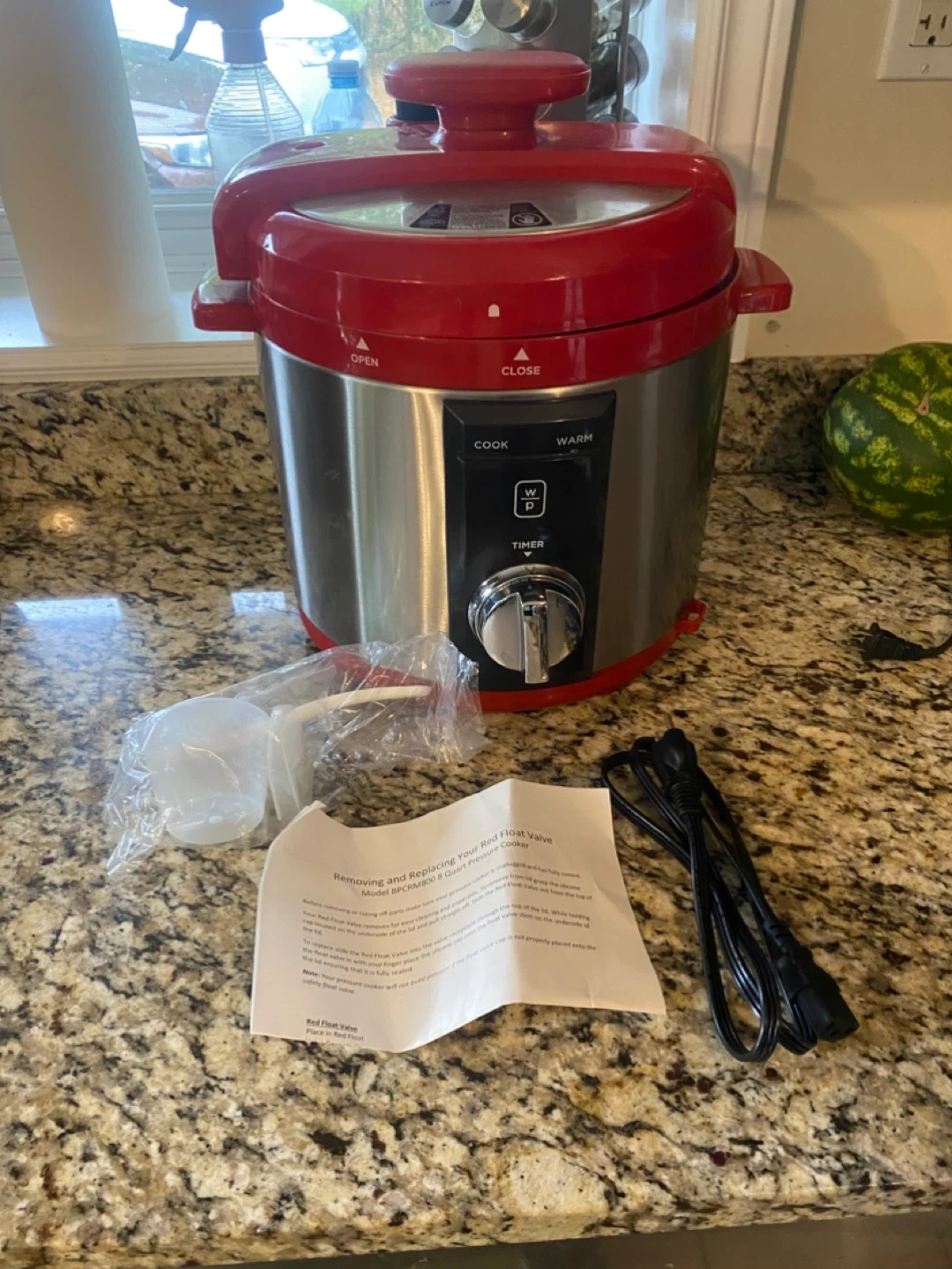 Selling a pressure cooker in great condition! It's an 8 quart model, perfect for making delicious meals. Included are the components you see in the picture: the pot, lid, power cord, measuring cup, and instructions