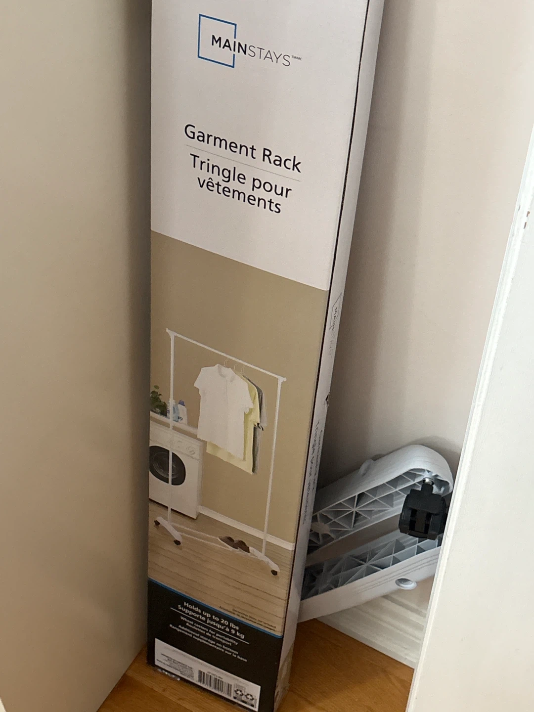 Selling a Mainstays garment rack. It's white and can hold up to 20 lbs.