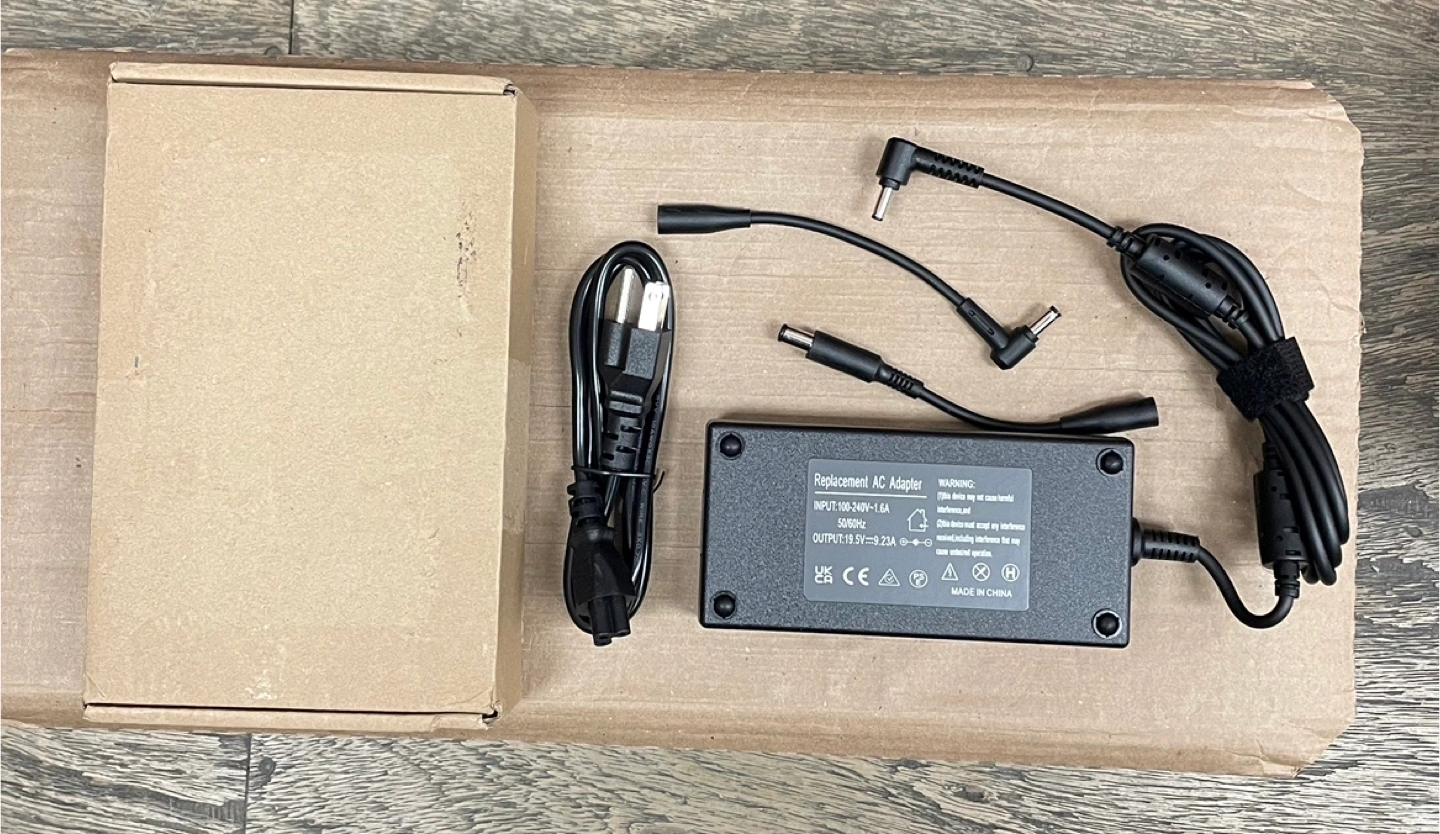 Selling a replacement AC adapter. It comes with multiple connectors for different devices. Included is the box and all the components shown in the pictures. The adapter has the following specifications: INPUT: 100-240V~1.6A 50/60Hz, OUTPUT: 19.5V=9.23A
