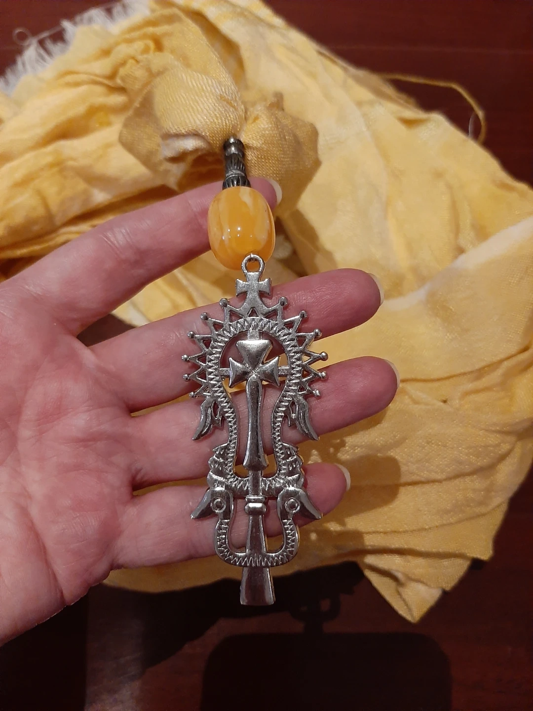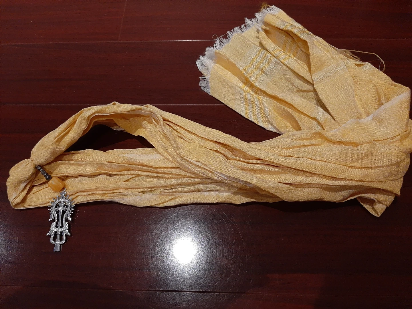Ethiopian Yellow Scarf with Silver Pendant