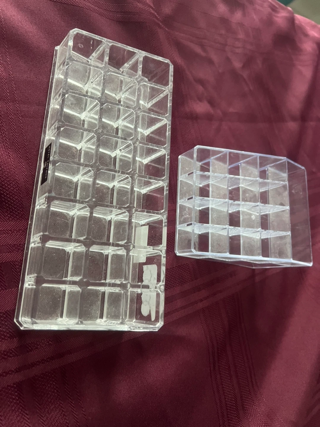Selling a set of acrylic lipstick makeup organizers! They're clear and in good condition, perfect for keeping your cosmetics tidy and accessible