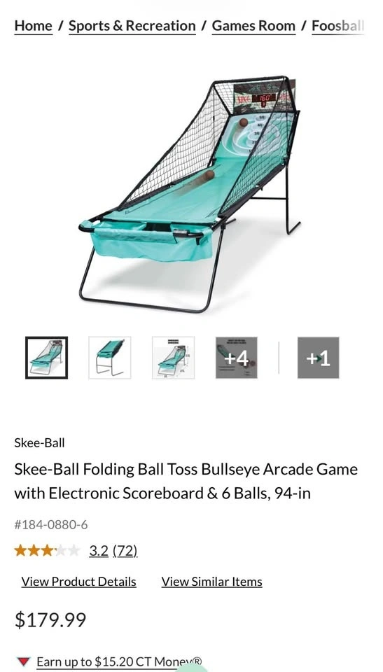Buy & SellFoldable Skee Ball MachineFoldable Skee Ball Machine$150Never opened, brand new. Retails at Canadian tire for 180. If the add is up, it’s available.WHERE TO MEETCheck LocationView MapSELLERKaleSeton50 reviews0 chats·0 favorites·3 viewsSEND CHAT TO SELLERHi Kale! I’m interested in your listing.Hi Kale! I’m interested in your listing.Get the Karrot app to chatSign In to chat