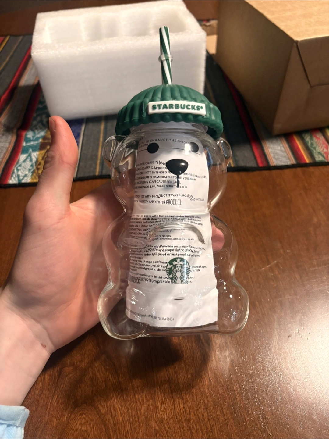 Selling a cute Starbucks Bearista Bear Cold Cup! It's perfect for your favourite cold beverages and will definitely bring a smile to your face. It is a clear cup shaped like a bear with a green lid and straw. It's in great condition!