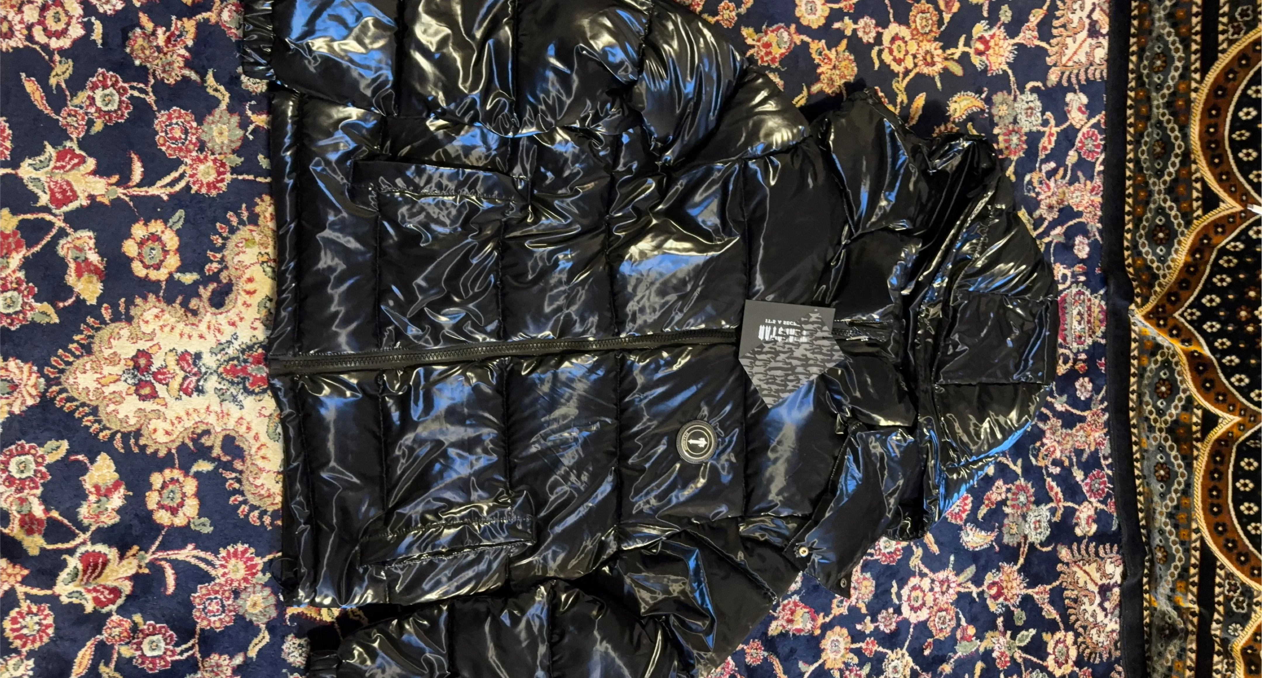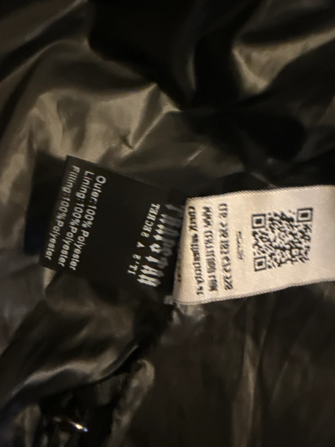 Selling a Trapstar puffer jacket in black, size medium. The outer and filling are both 100% polyester. Great for staying warm and stylish!