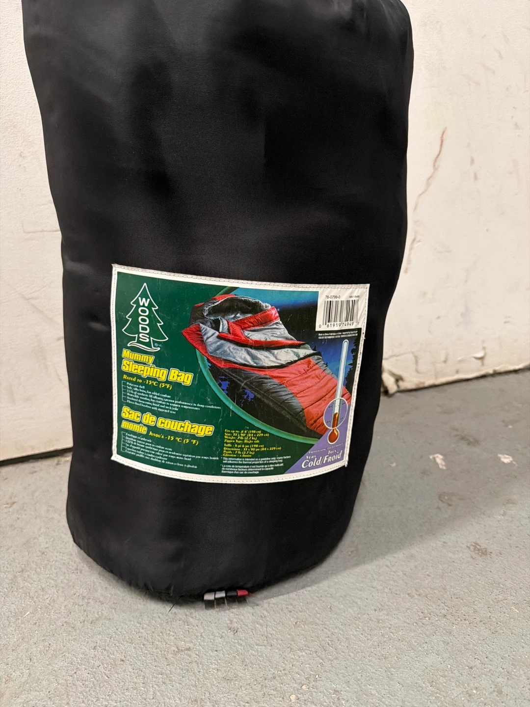 Selling a Woods Mummy Sleeping Bag, perfect for those chilly Canadian nights! It's rated to -15°C (5°F), so you'll stay nice and toasty. This sleeping bag is ready for your next camping adventure