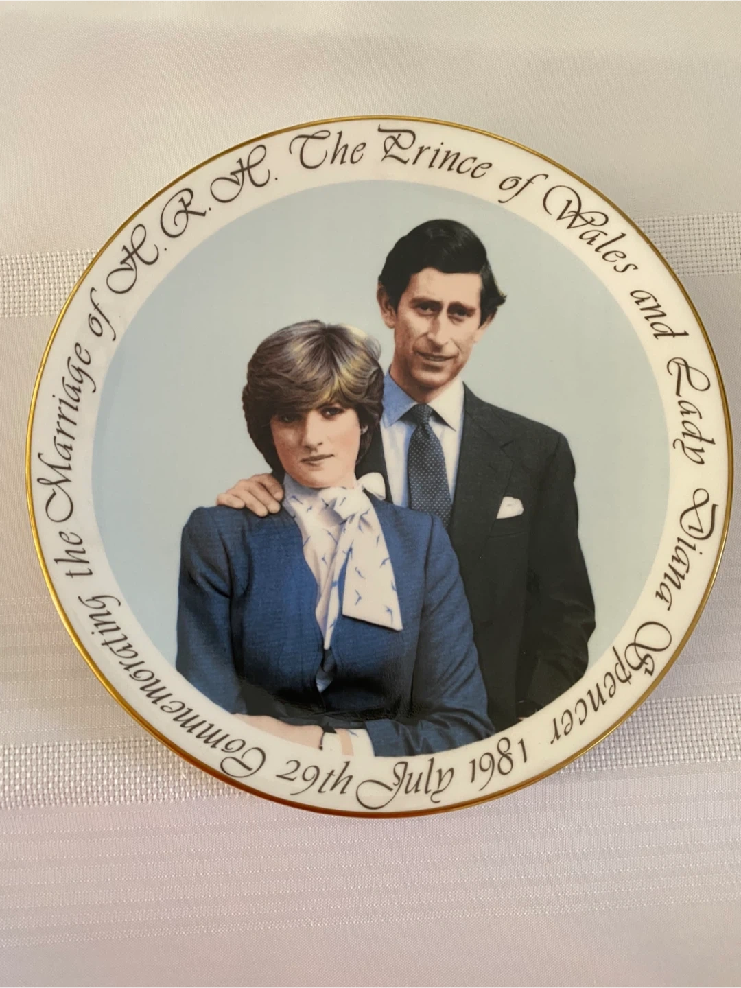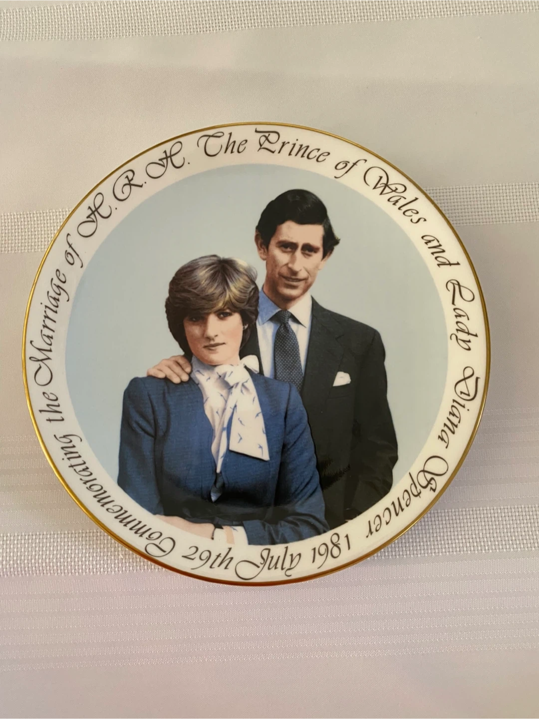 This plate commemorating the marriage of Lady Diana and Prince Charles is 8 1/2 inches in diameter.