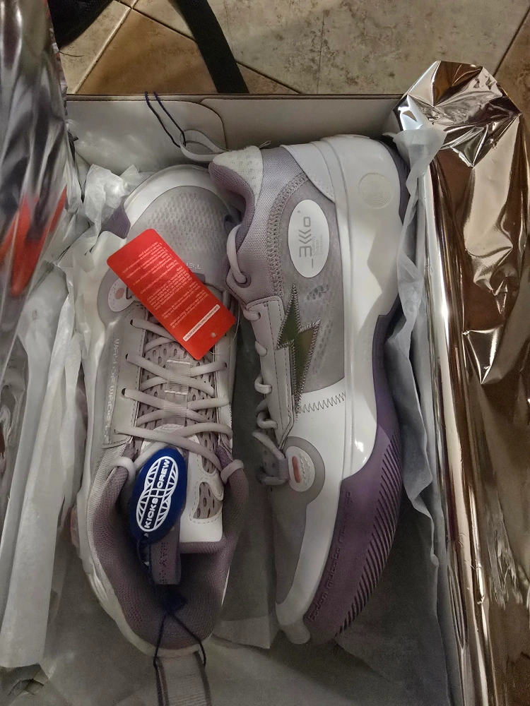 Brand new way of wade low 10 volleyball/basketball shoes. Women's size 11/ Men's 9.5. Colour - Lavender. I paid nearly $340 for the shoes, taxes, shipping and custom's taxes but willing to part with them for $300. I got them as for my kid as an Xmas gift, but a bit narrow and cost to exchange is another $150 for shipping & taxes (frustrating!).
