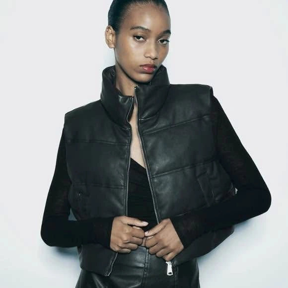 Zara Puffer Faux Leather Cropped Vest (size small)