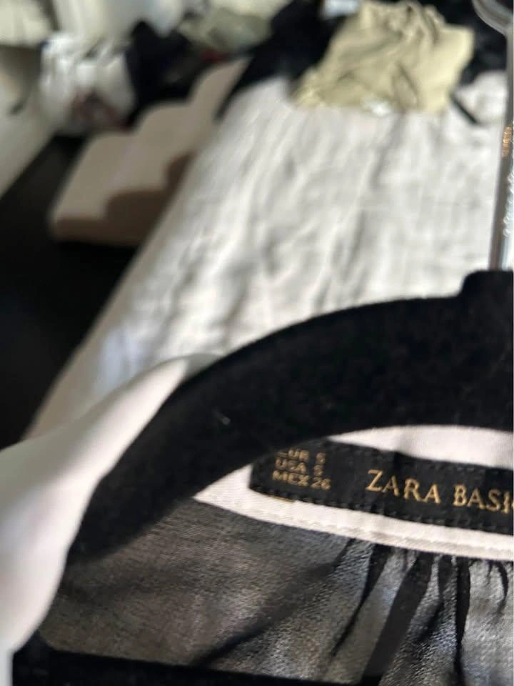 Zara Basic. Size small, good for a size 4-6. In black with a white collar, the back is a thin mesh to show off your back! Great for holiday parties, super cute and elevated. In good condition, no imperfections, tears or pulls.