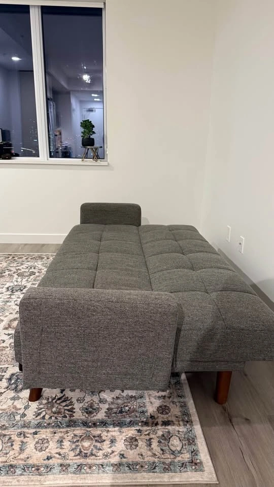 Great condition with the exception of some tears at the back that are not visible if put against the wall. The back rest folds down to rest on it. Has side pockets. Pickup downtown on Jasper ave. Price is firm.