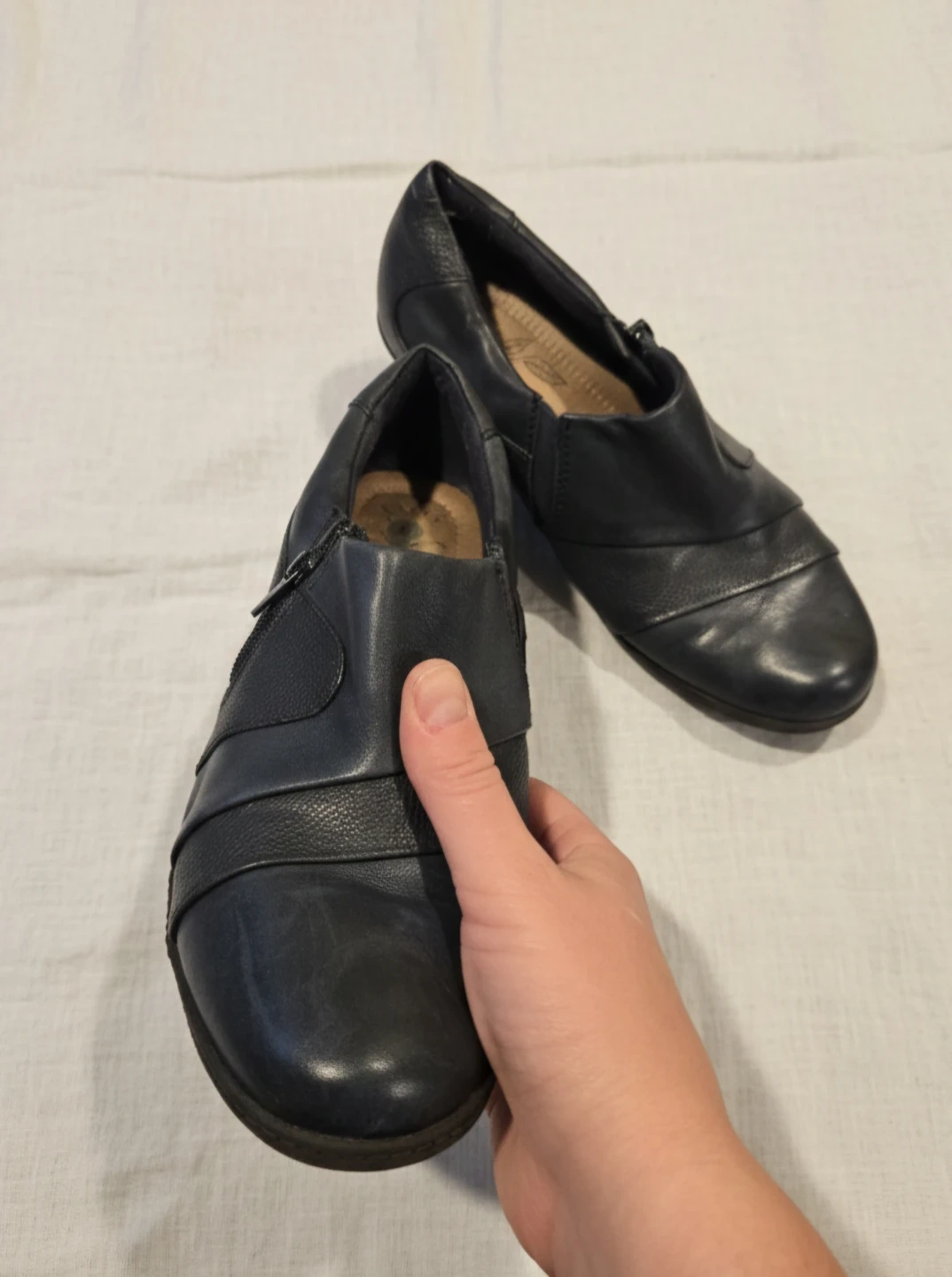 Selling a pair of Earth Origins black leather shoes in size 10. They feature a stylish design and comfortable fit. Perfect for everyday wear