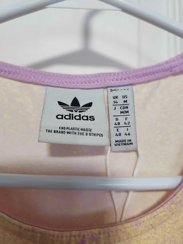 Adidas sleeveless athletic tank in a soft multicolor pastel tone. Lightweight and breathable, great for workouts, gym sessions, yoga, or casual athleisure wear. Comfortable relaxed fit with scoop neckline.