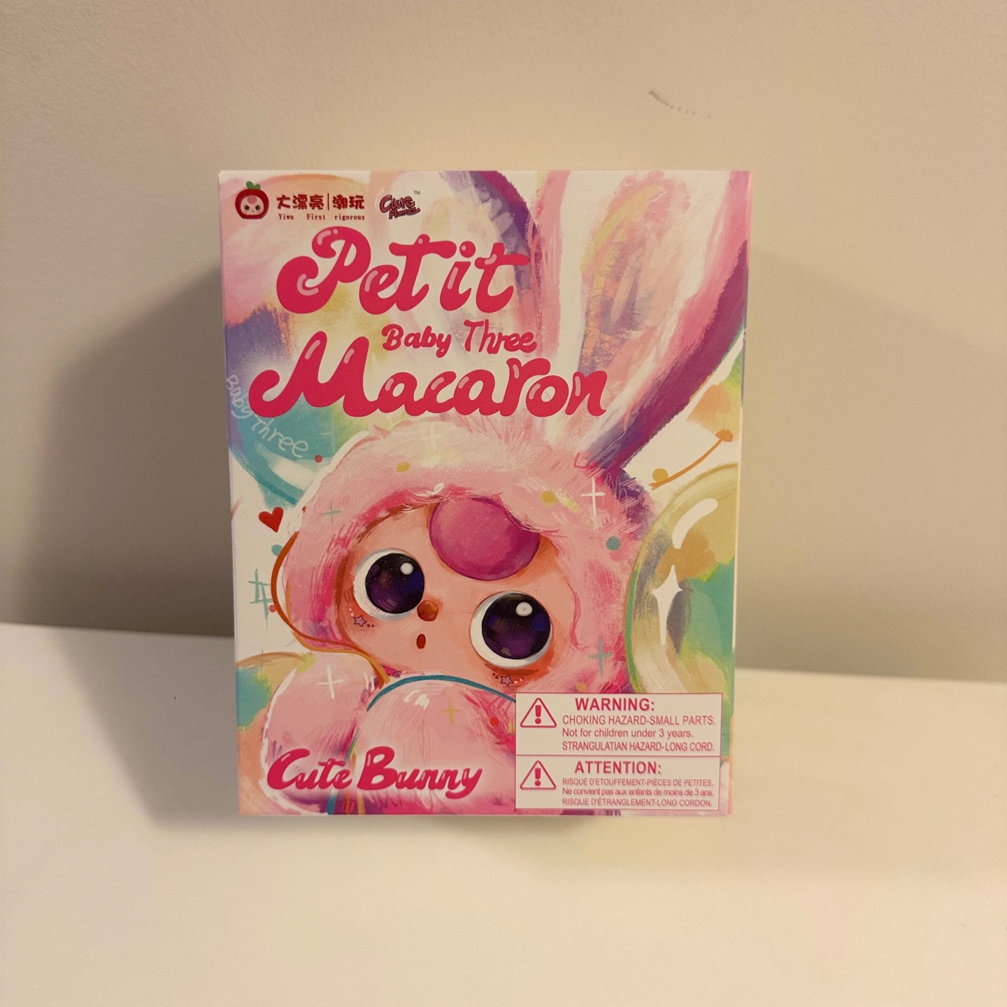 Opened blind box, but brand new (never been put on display) Baby Three Macaron "cocoa" bunny. There's nothing wrong with the bunny, it's just not the one I wanted. I opened the box from the bottom so you can seal it up again if you're buying it for a gift, however the blind bag has been ripped open (although you can seal that as well.) Care instructions: wipe clean with damp cloth to keep your bunny fresh.