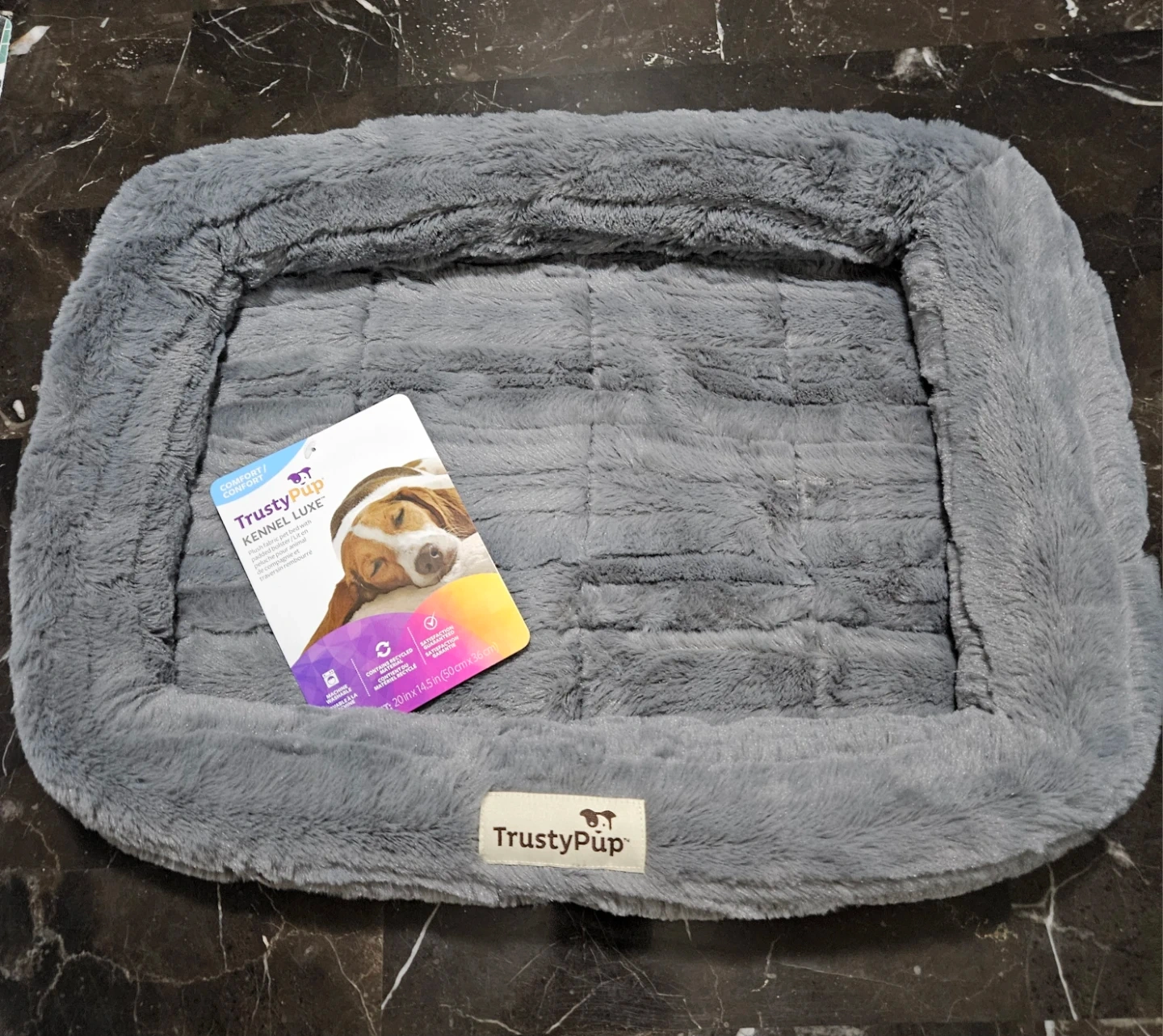 Keep your furry friend comfy with this TrustyPup Kennel Luxe bed! It's small, measuring 20 inches x 14.5 inches (50 cm x 36 cm). Very soft. New with tags on. Non smoking house. Pick up east mountain