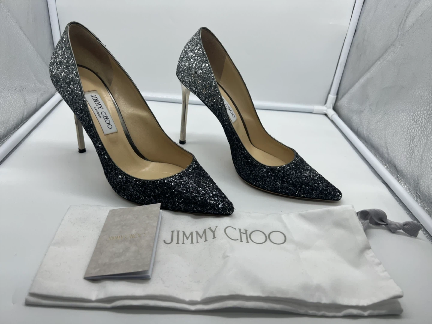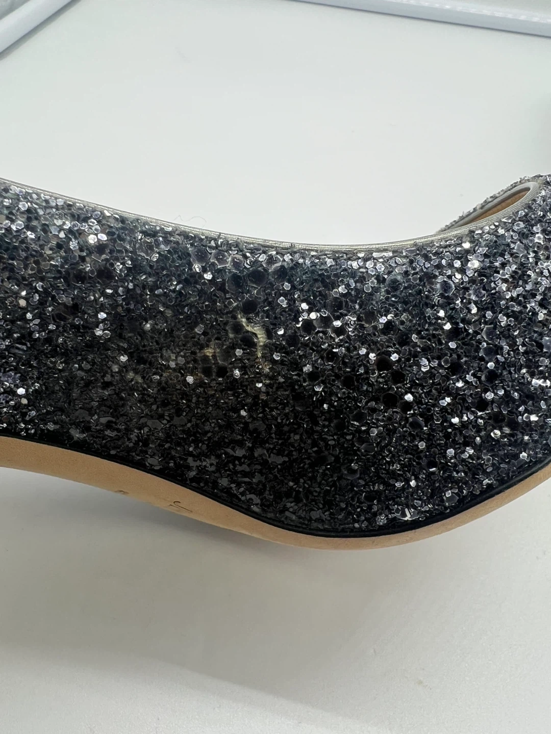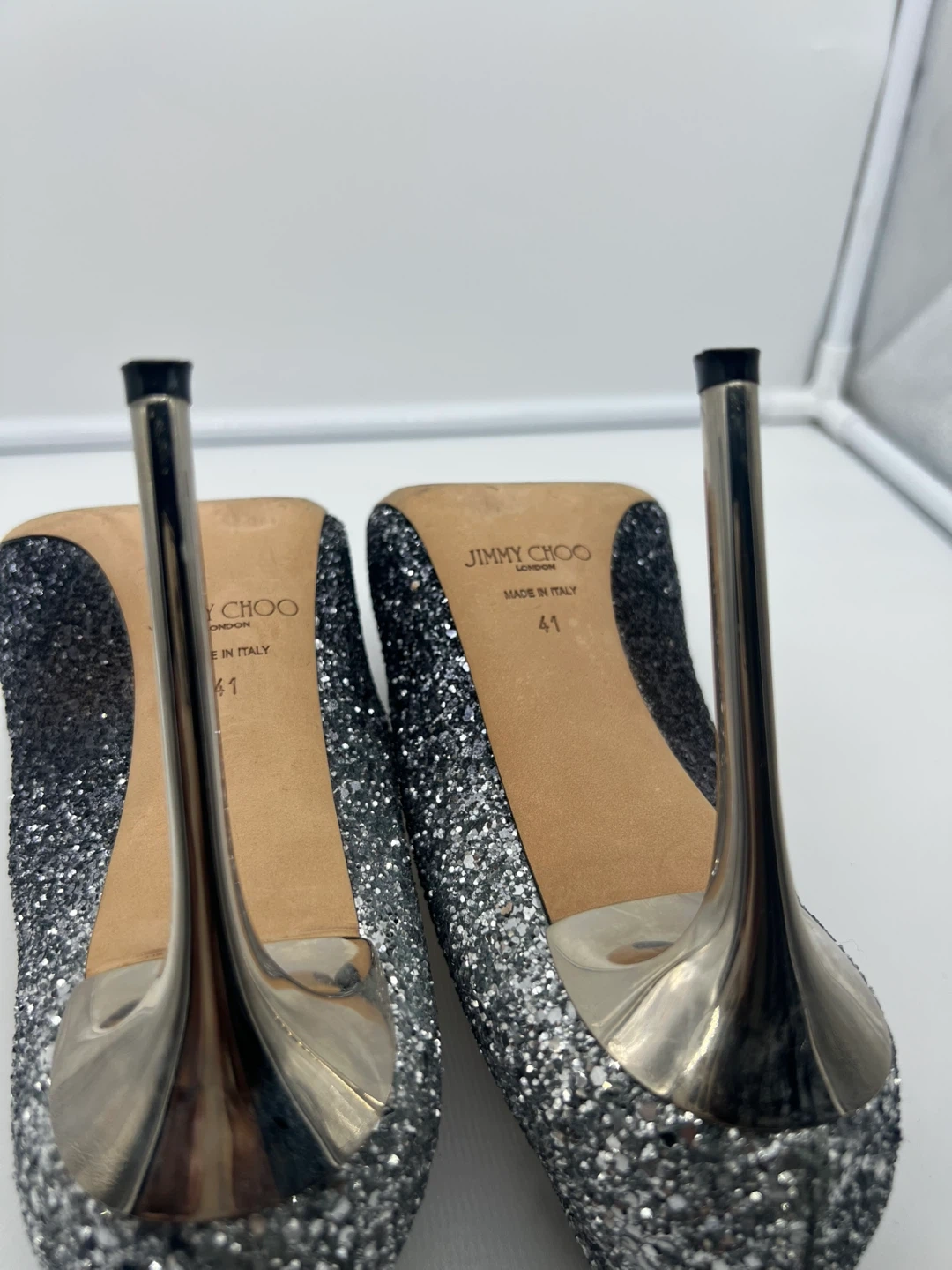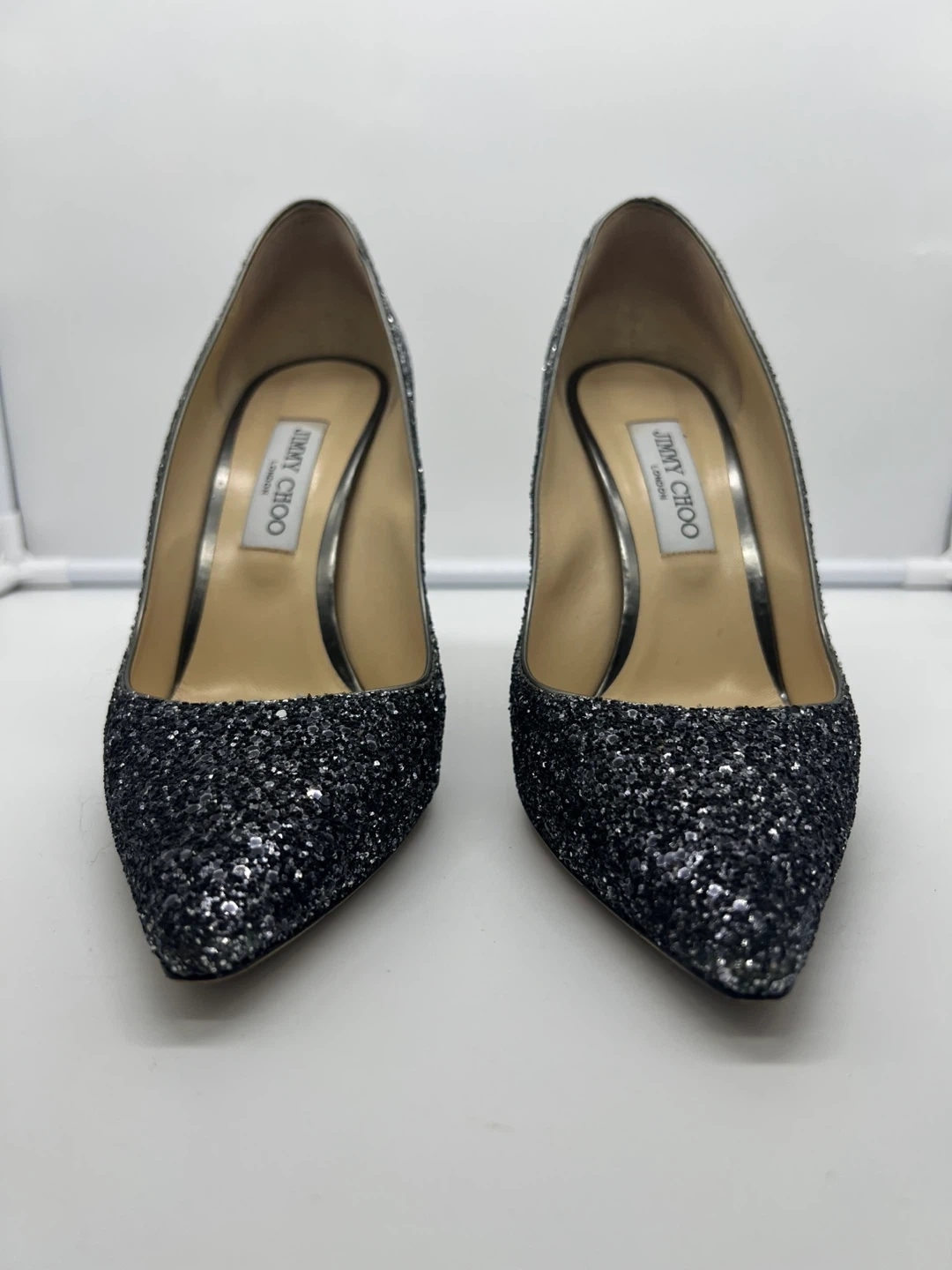 Jimmy Choo Romy 100 Glitter Ombre Navy Silver Heels sz 41