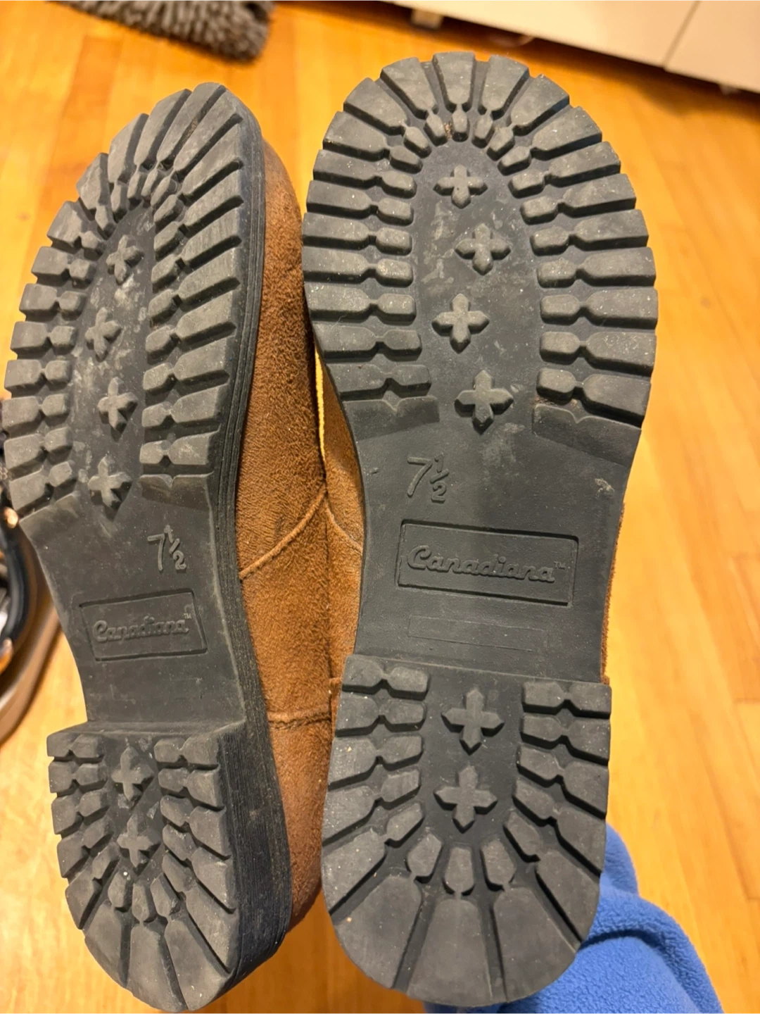 Selling a pair of Canadiana boots in a lovely brown suede! They are a size 7.5. These boots have laces and a durable sole, perfect for everyday wear!pickup at Morley trail NW