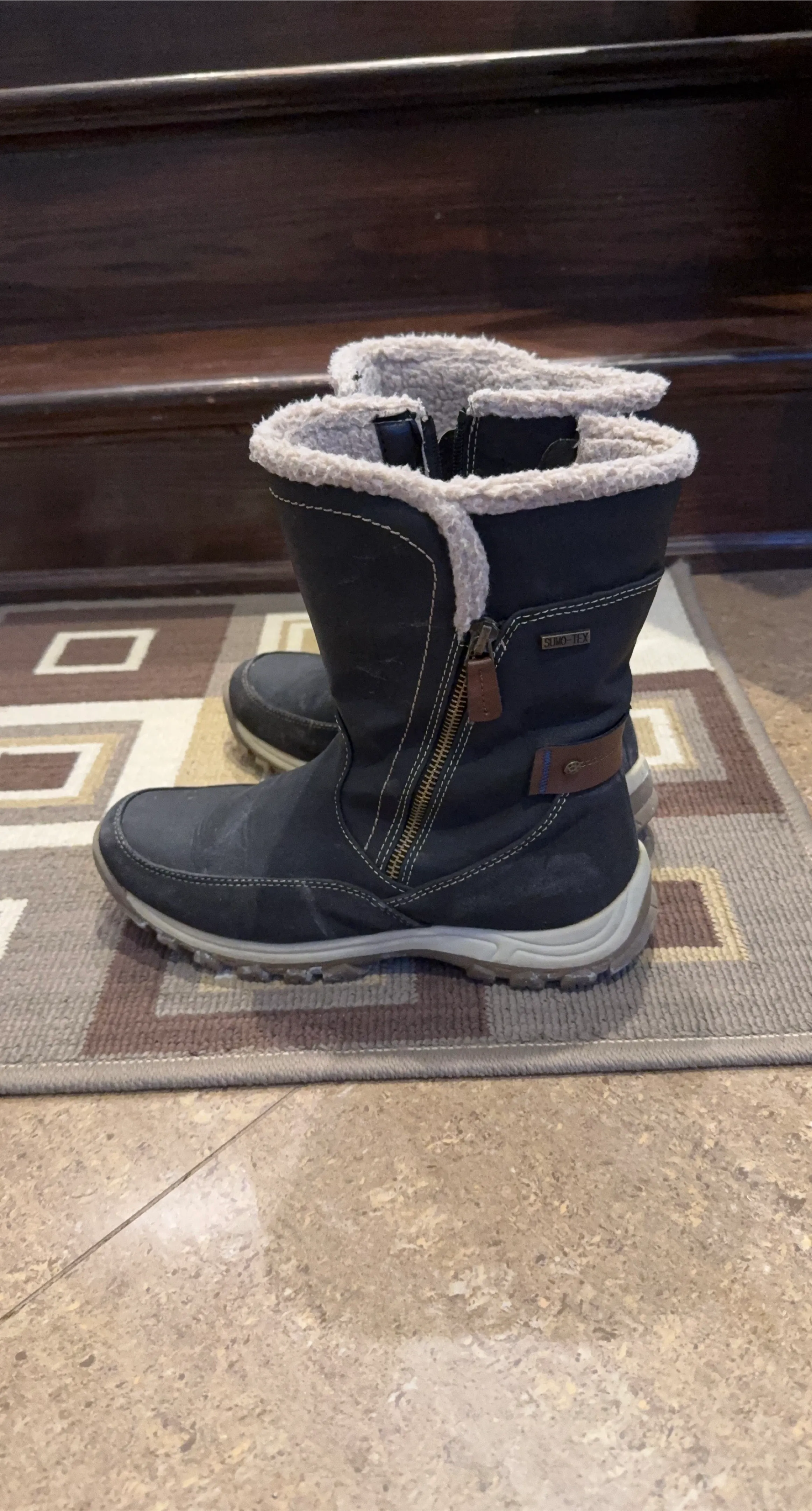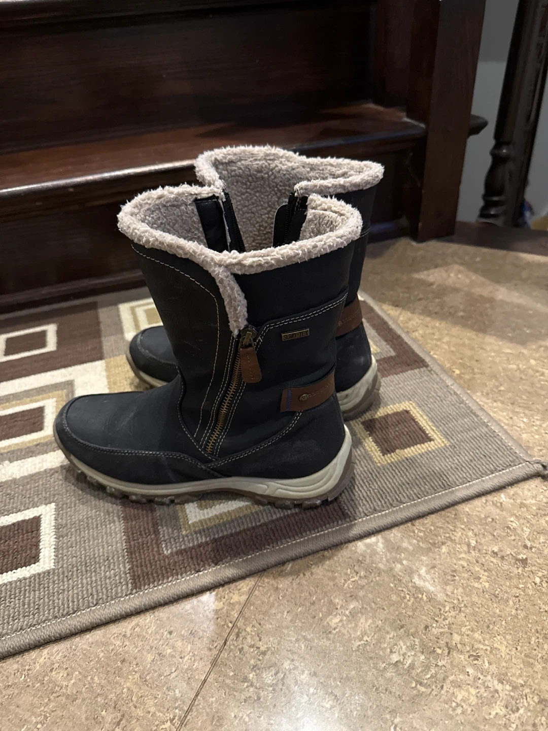 Womens winter boots, size 40. These boots are perfect for keeping feet warm and dry during the cold Canadian winter. They feature a waterproof membrane and a cozy lining.