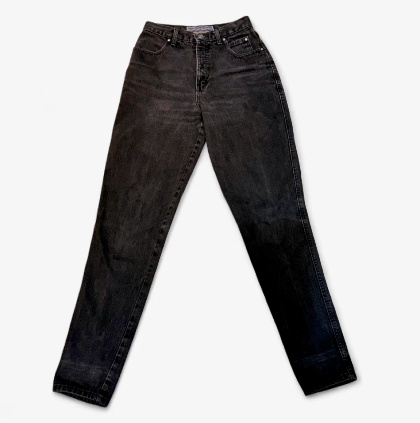 Women’s size 8 TALL. High waisted light black denim jeans. Mom biker jeans style. Deep pockets. High quality denim, iconic, and flattering. No flaws to note considering age.