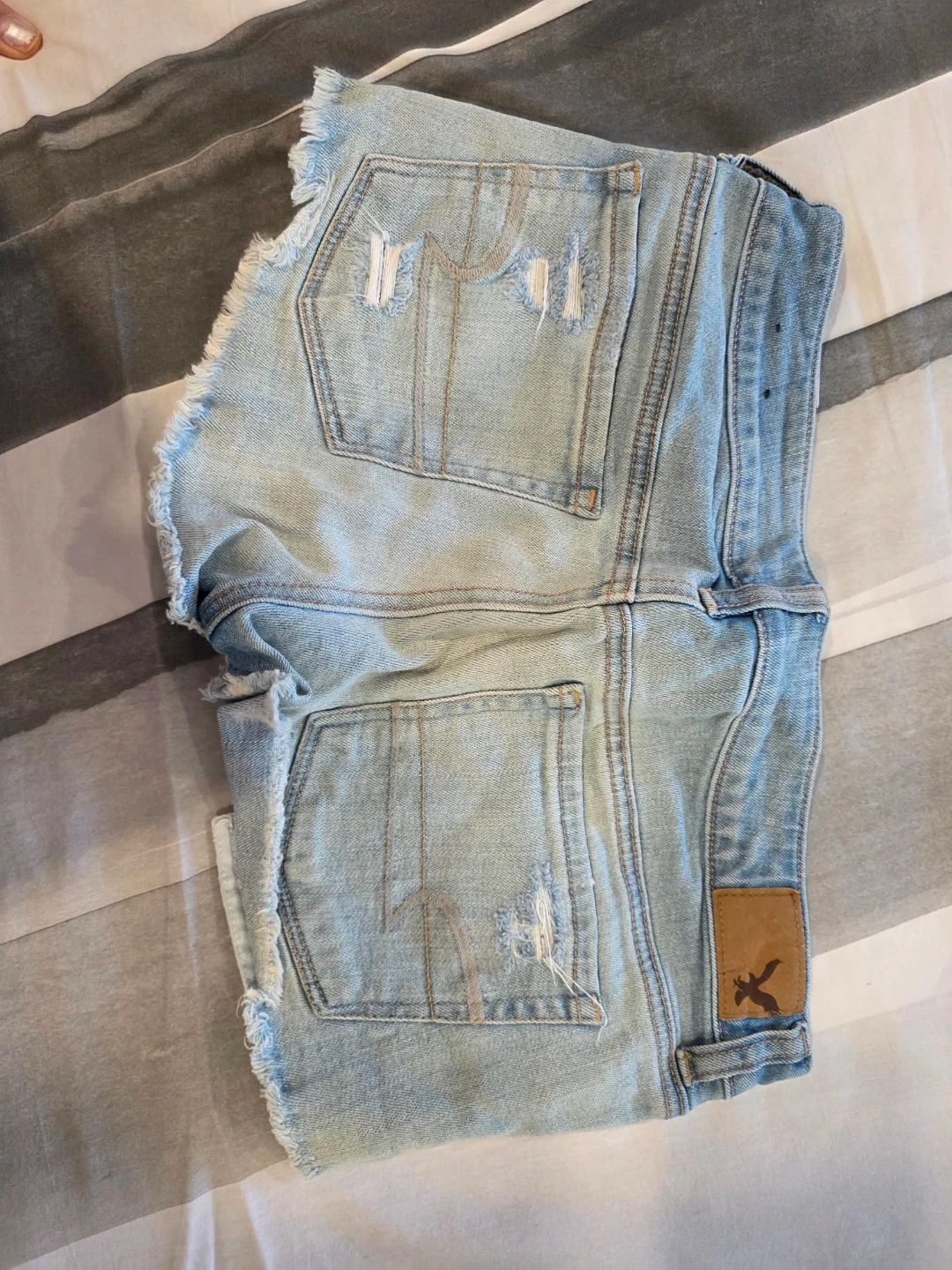 Selling a pair of American Eagle Outfitters denim shorts! They have a cute, distressed look with some stylish details. Perfect for summer! Too short