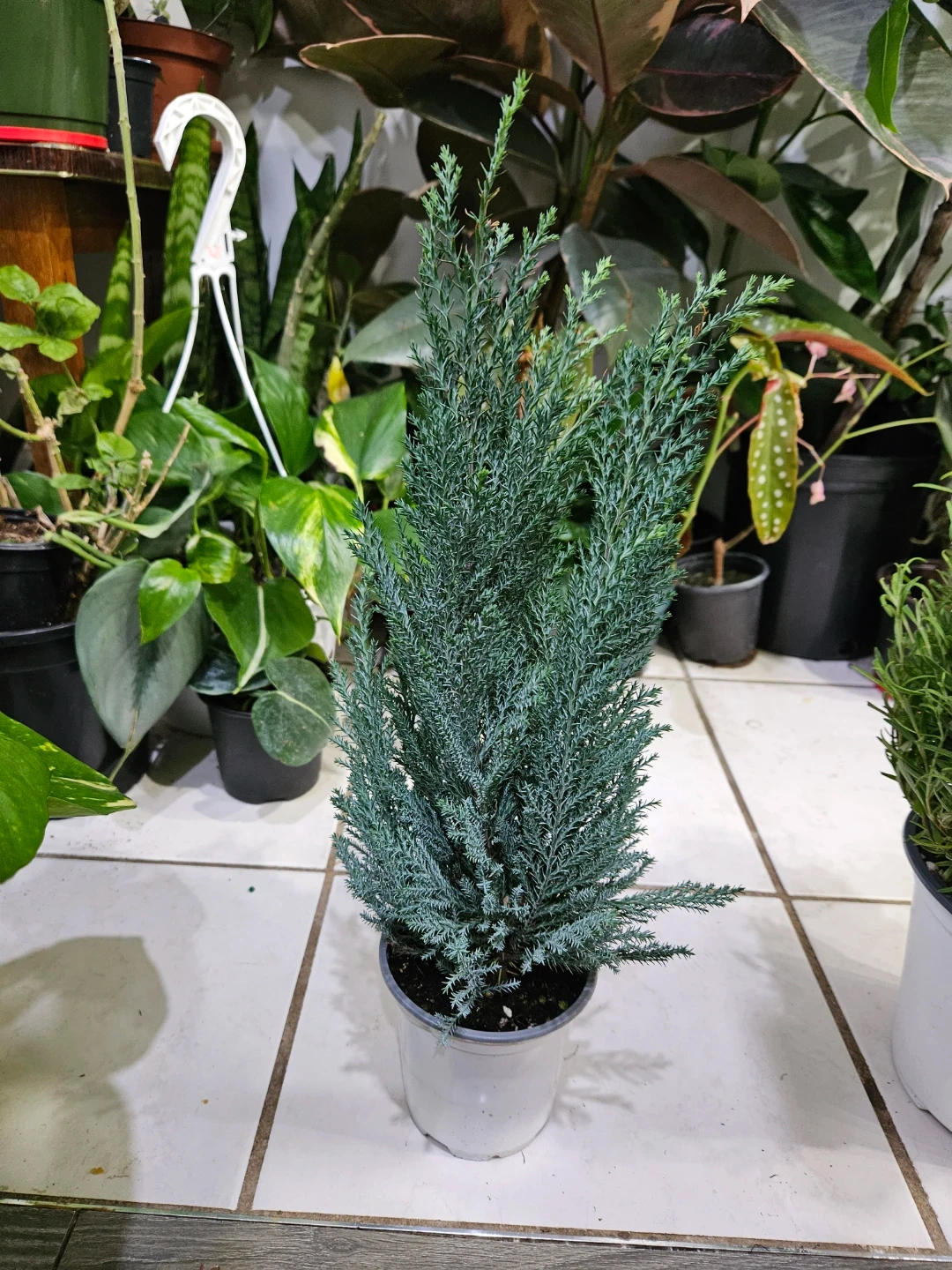 A beautiful Blue Italian Cypress plant to add some greenery to your space! This plant has a lovely blue-green hue and a classic, elegant shape. It's perfect for adding a touch of sophistication to your home or garden