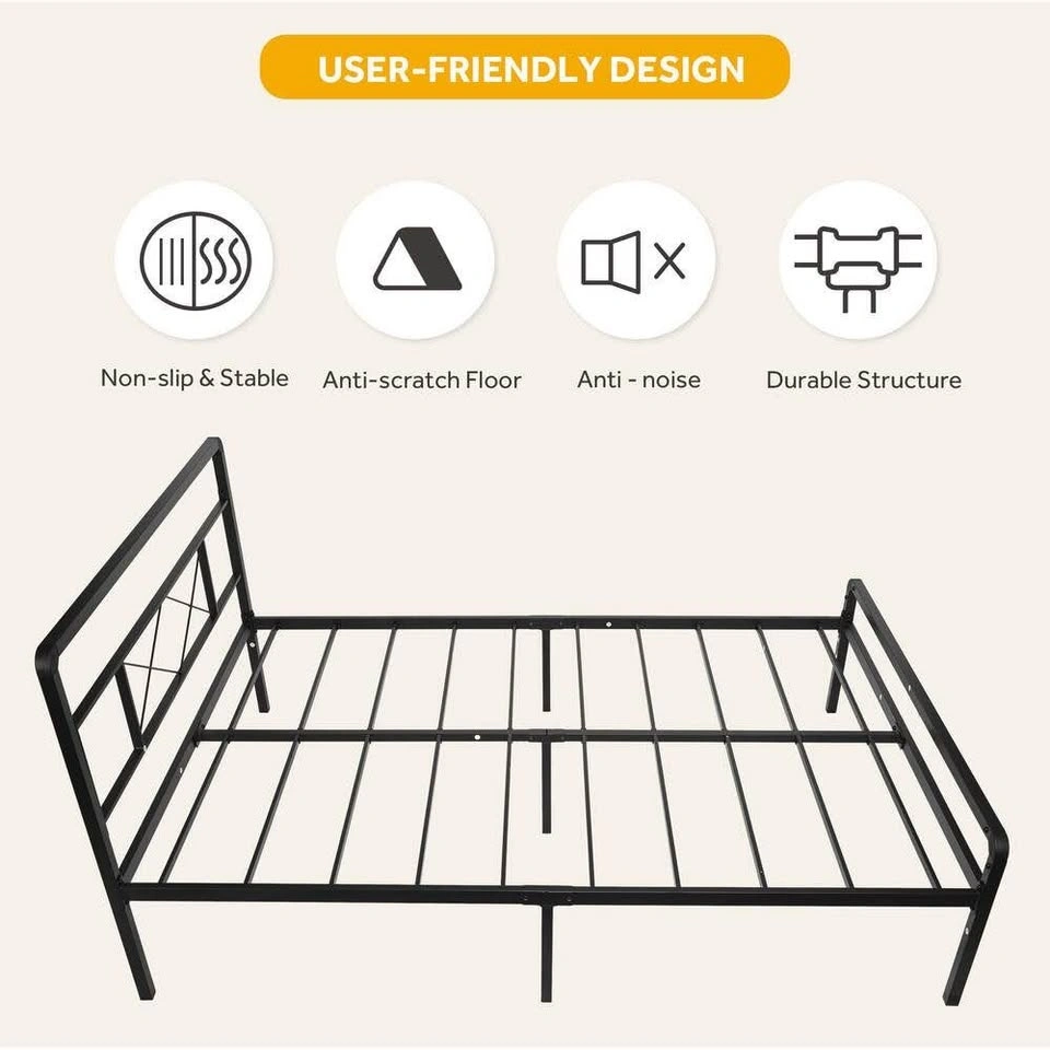 Full/Double Metal Platform Bed with Strong Slats - NEW