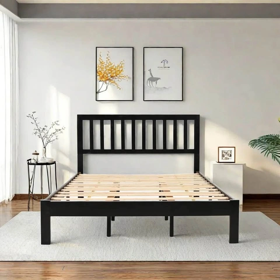 •Modern farmhouse style: Open-slat headboard with clean lines and wood accents for a cozy, timeless look