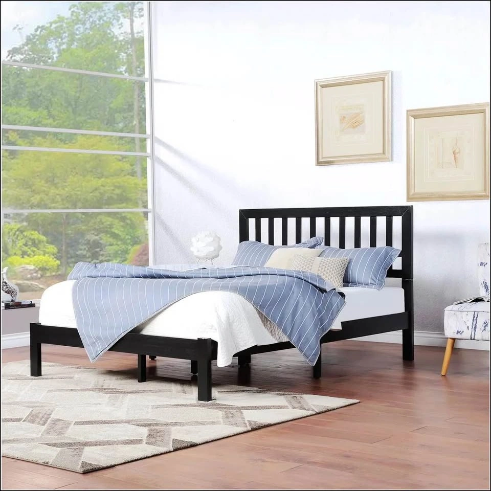 •No box spring needed: Strong slatted base supports your mattress directly