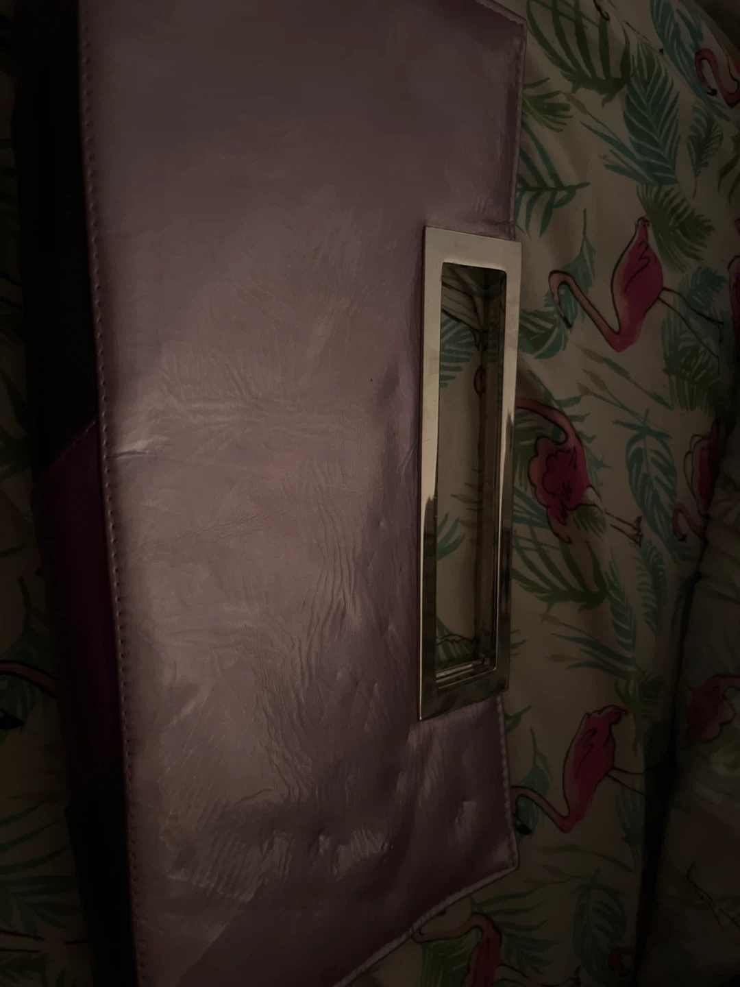 Selling a cute lilac clutch with a distinctive silver handle. It's in great shape and perfect for a night out or special occasion. The colour is a soft, pretty lilac, and the silver handle adds a touch of elegance