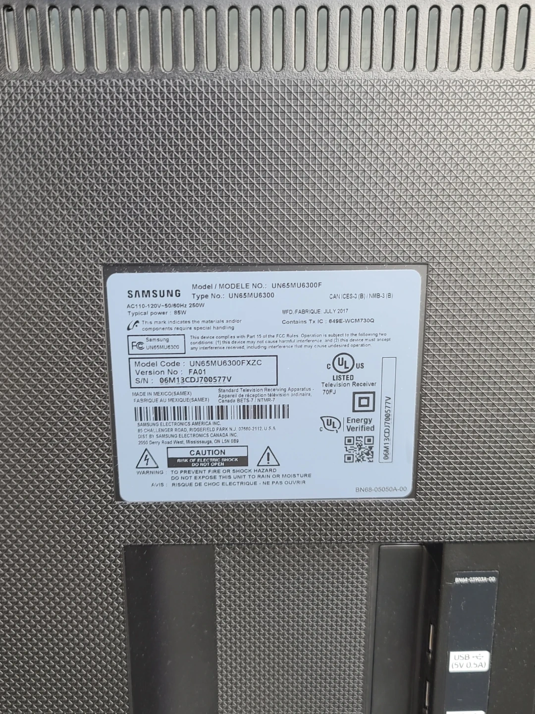 Samsung 65” 4K Smart TV – Great Condition. 65-inch Samsung 4K UHD Smart TV (Model UN65MU6300).
