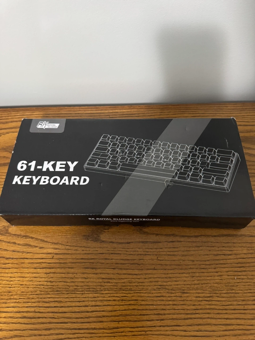 Selling a Royal Kludge RK61 mechanical wireless keyboard in white. It's a 61-key keyboard and comes with the original box, user manual, and USB cable. Great for a compact setup!