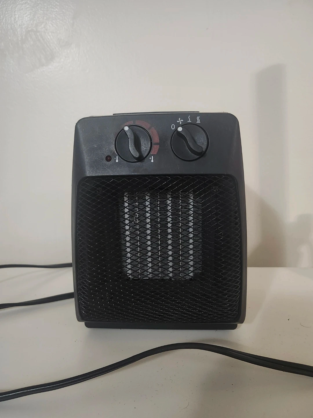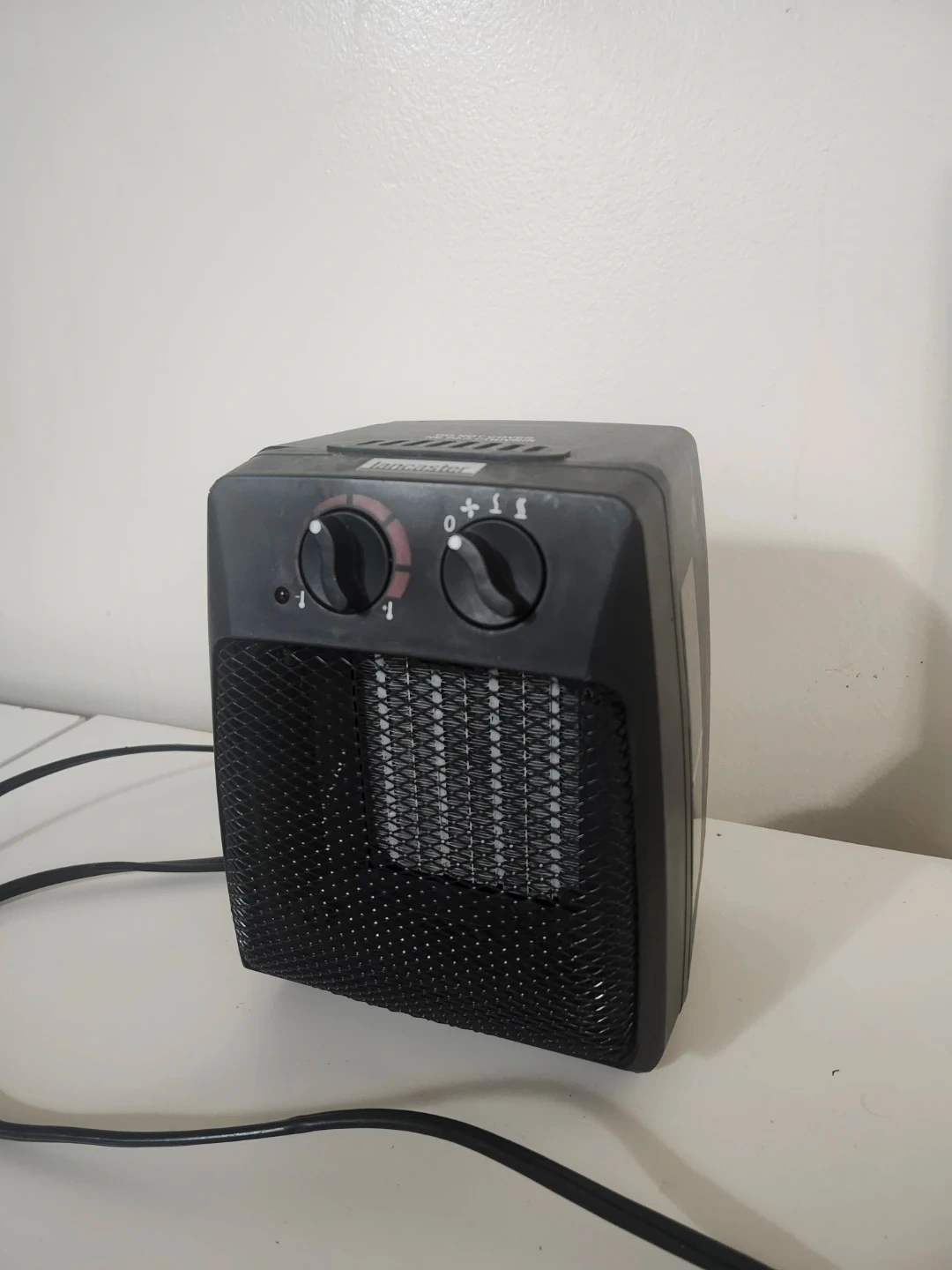 I'm selling a portable space heater in black. It's perfect for small spaces and easy to move around. Great for adding a little extra warmth to your room during these chilly months