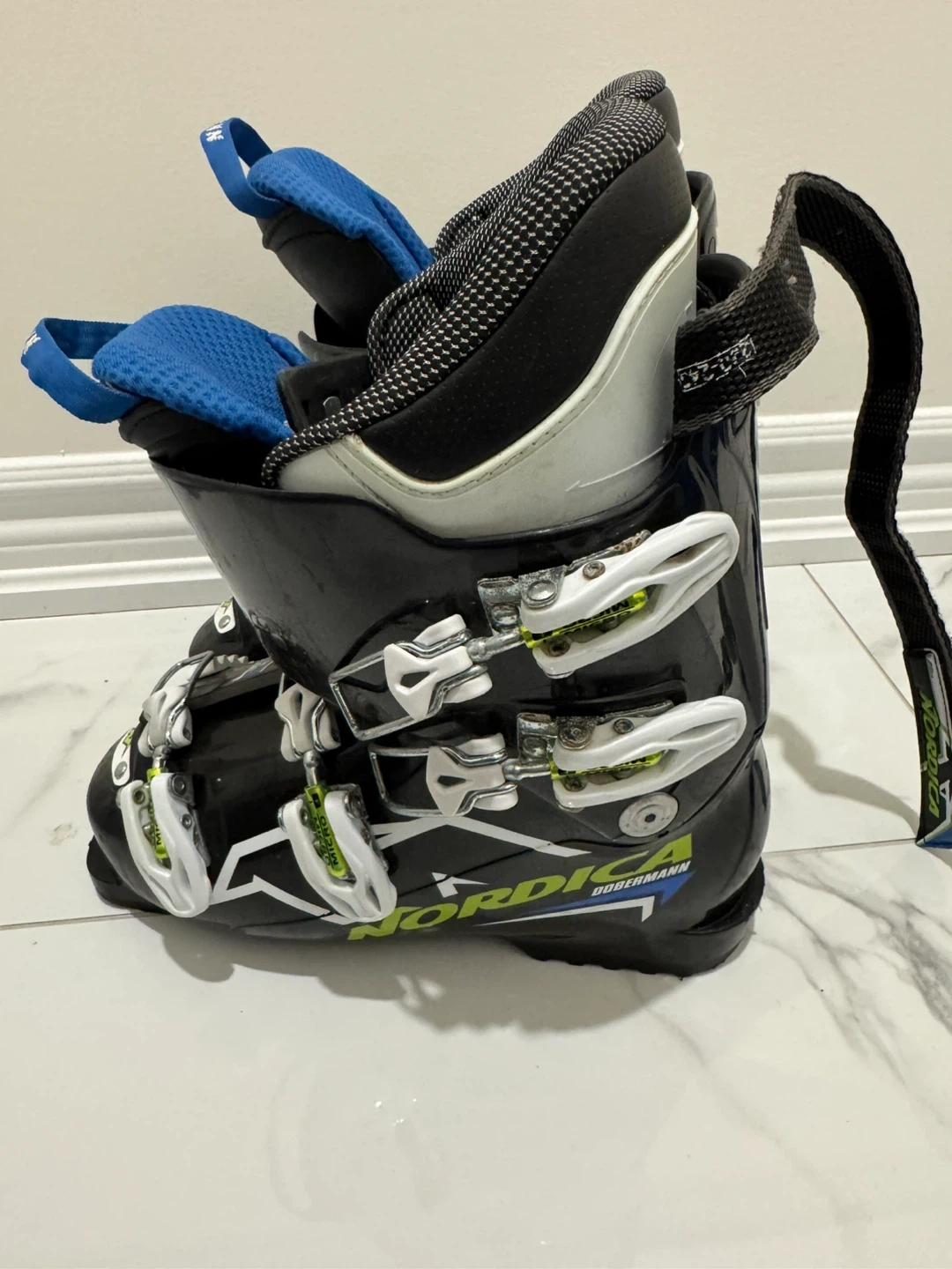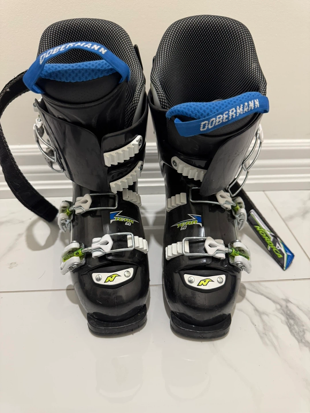 Selling Nordica Dobermann Team 60 ski boots in black. The size is 240-245mm mondo point/men size 6-6.5. They're in really good condition and ready for the slopes.