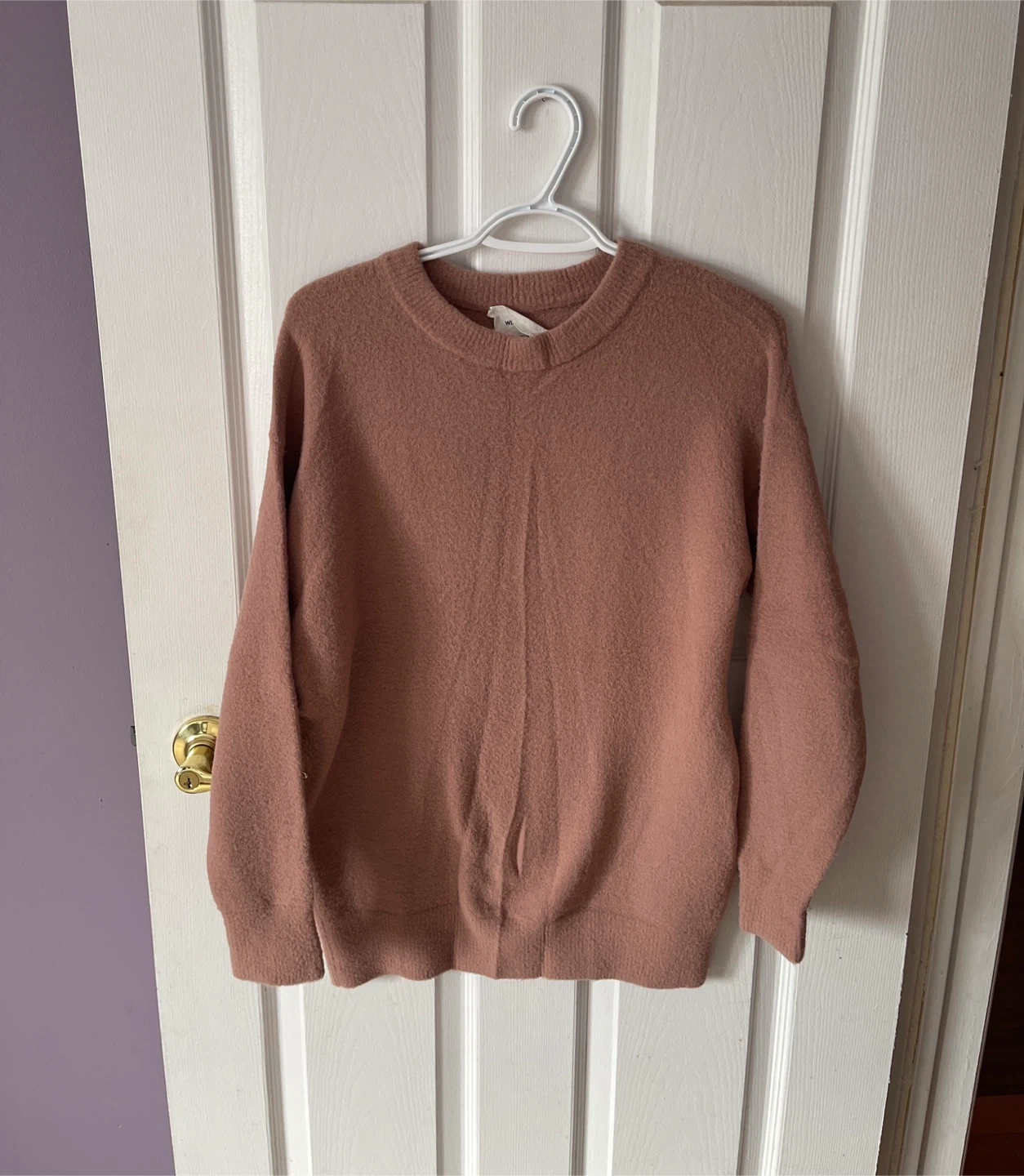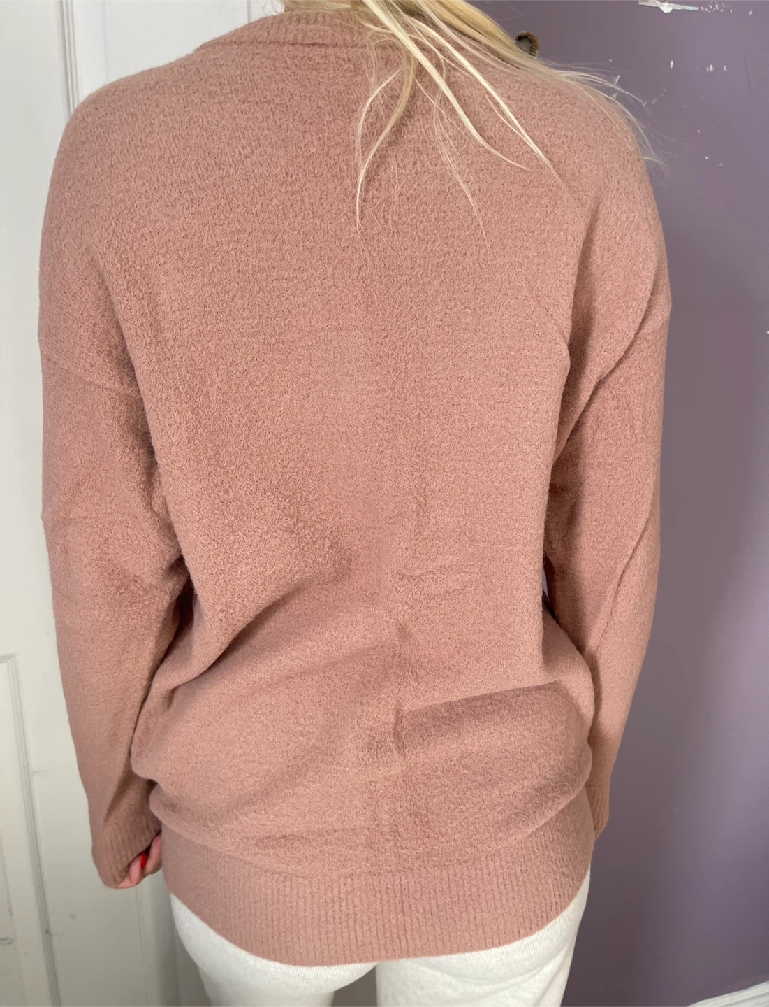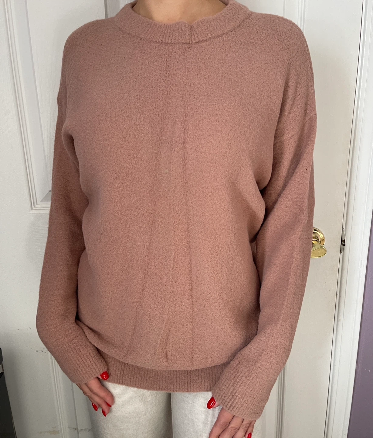 Selling an Aritzia Hush Knit Gingko Sweater! It's a comfy knit crewneck sweater, perfect for staying cozy. The colour is a lovely mauve-pink shade. Great for layering or wearing on its own!