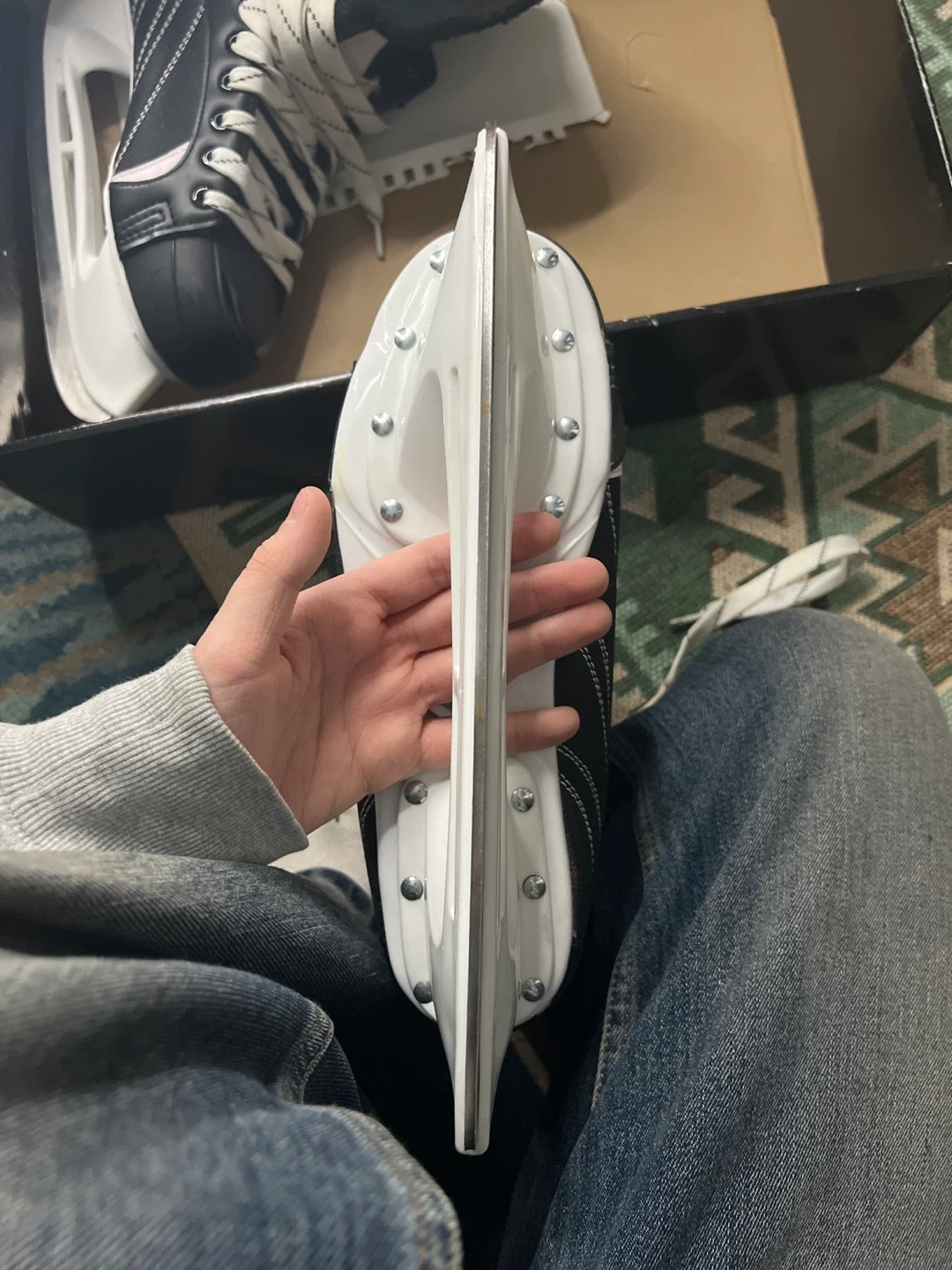 Selling a pair of Hespeler H5 hockey skates in black. They are size 10 US and come in the original box. Great for hitting the ice!
