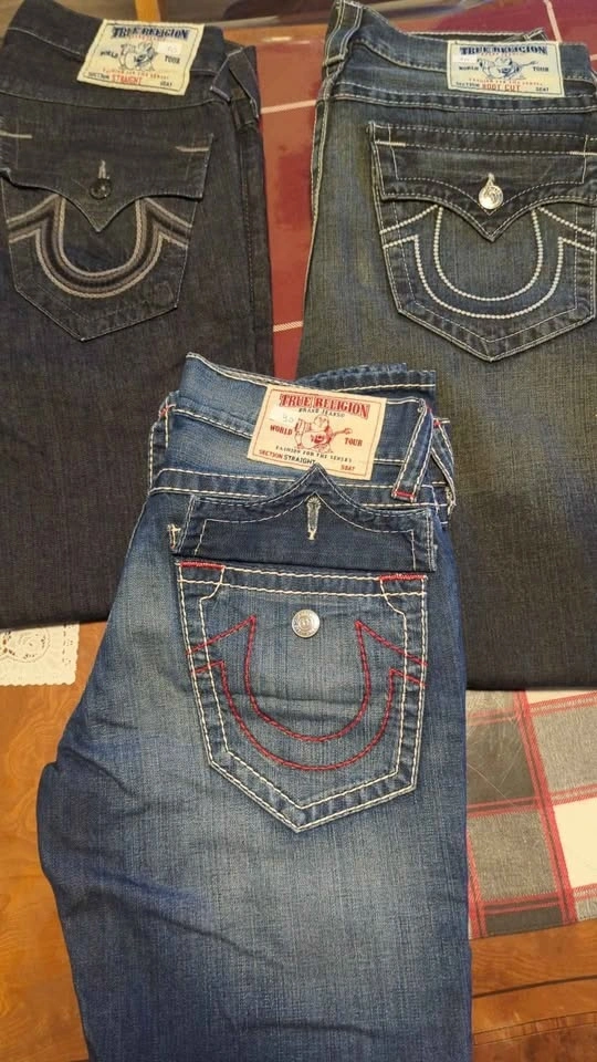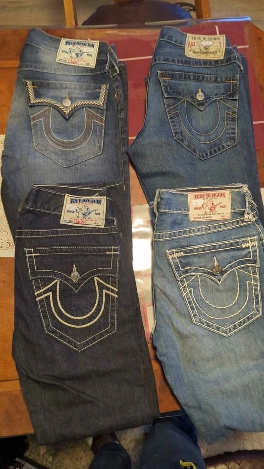 These pants are brand new to new in their stickers. I have many True Religion jeans and one William Rast jeans that are of different models and sizes. Here are the following sizes: