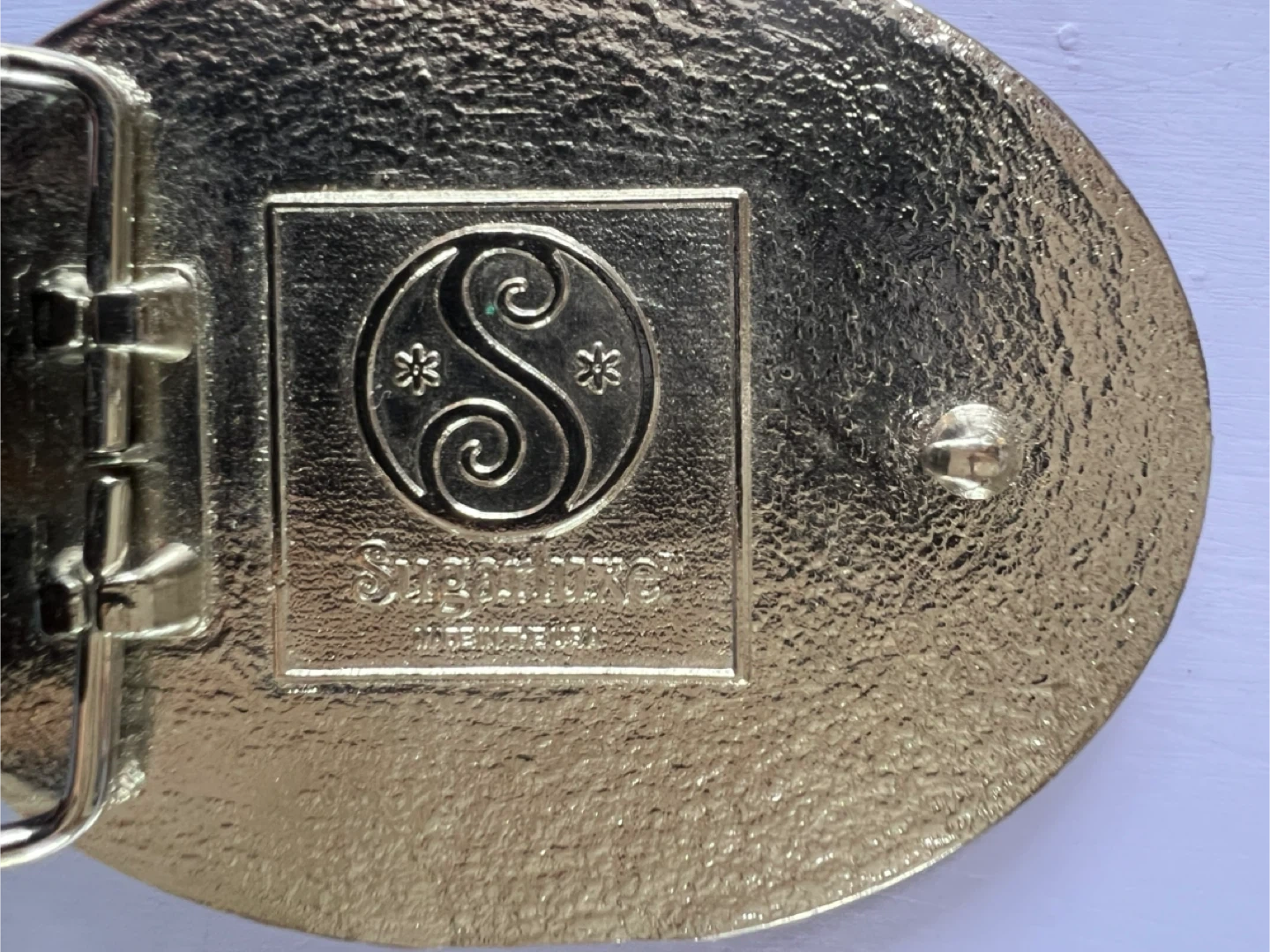 Selling a vintage Sugar Babe belt in size S-32. It features a unique floral design on the buckle with rhinestone accents. The belt is made of genuine leather.