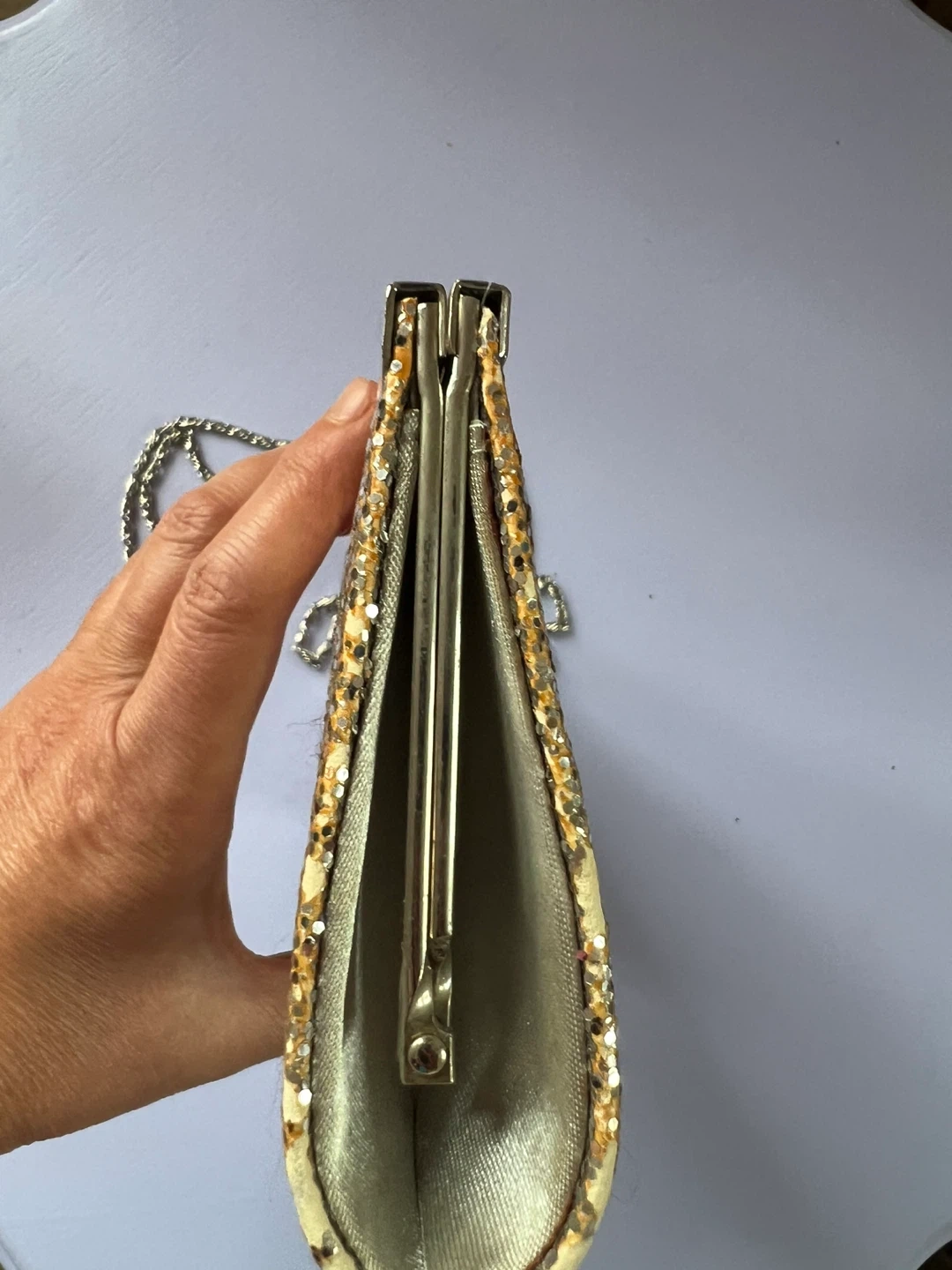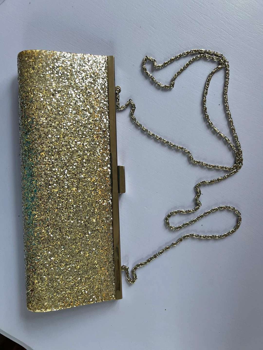 Buy & SellSasha Hand Made Gold Glitter ClutchSasha Hand Made Gold Glitter Clutch$50This is a gorgeous Sasha hand made clutch with a gold glitter finish and a chain strap. It's perfect for a night out or a special occasion!BrandSashaWHERE TO MEET42 St-Port Authority Bus TerminalView MapSELLERverifiedAnnAWest New York792 reviews0 chats·0 favorites·4 viewsSEND CHAT TO SELLERHi AnnA! I’m interested in your listing.Hi AnnA! I’m interested in your listing.Get the Karrot app to chatSign In to chat