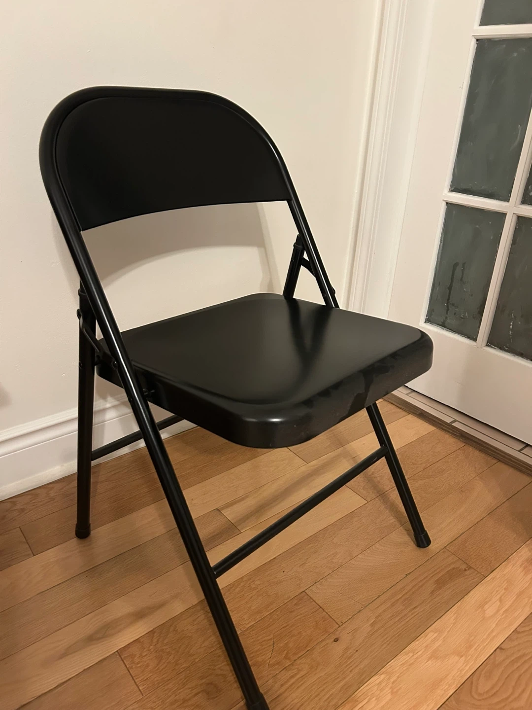 Selling 2 black folding chairs. Perfect for extra seating when you have guests over. Lightweight and easy to store when not in use. Only used a few times. The price is for 2 chairs.