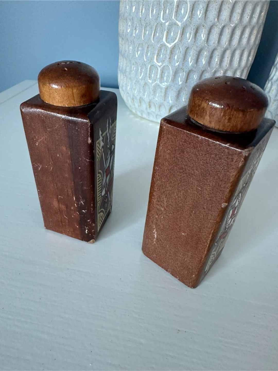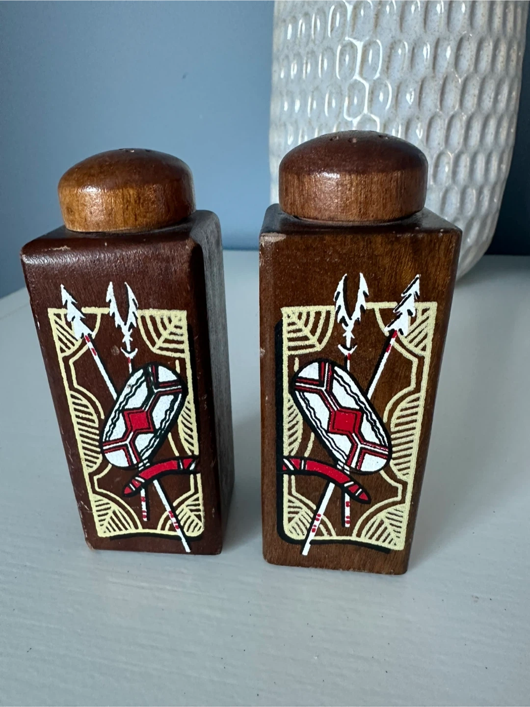 Vintage Australian Aboriginal Wood Salt & Pepper Shaker Set