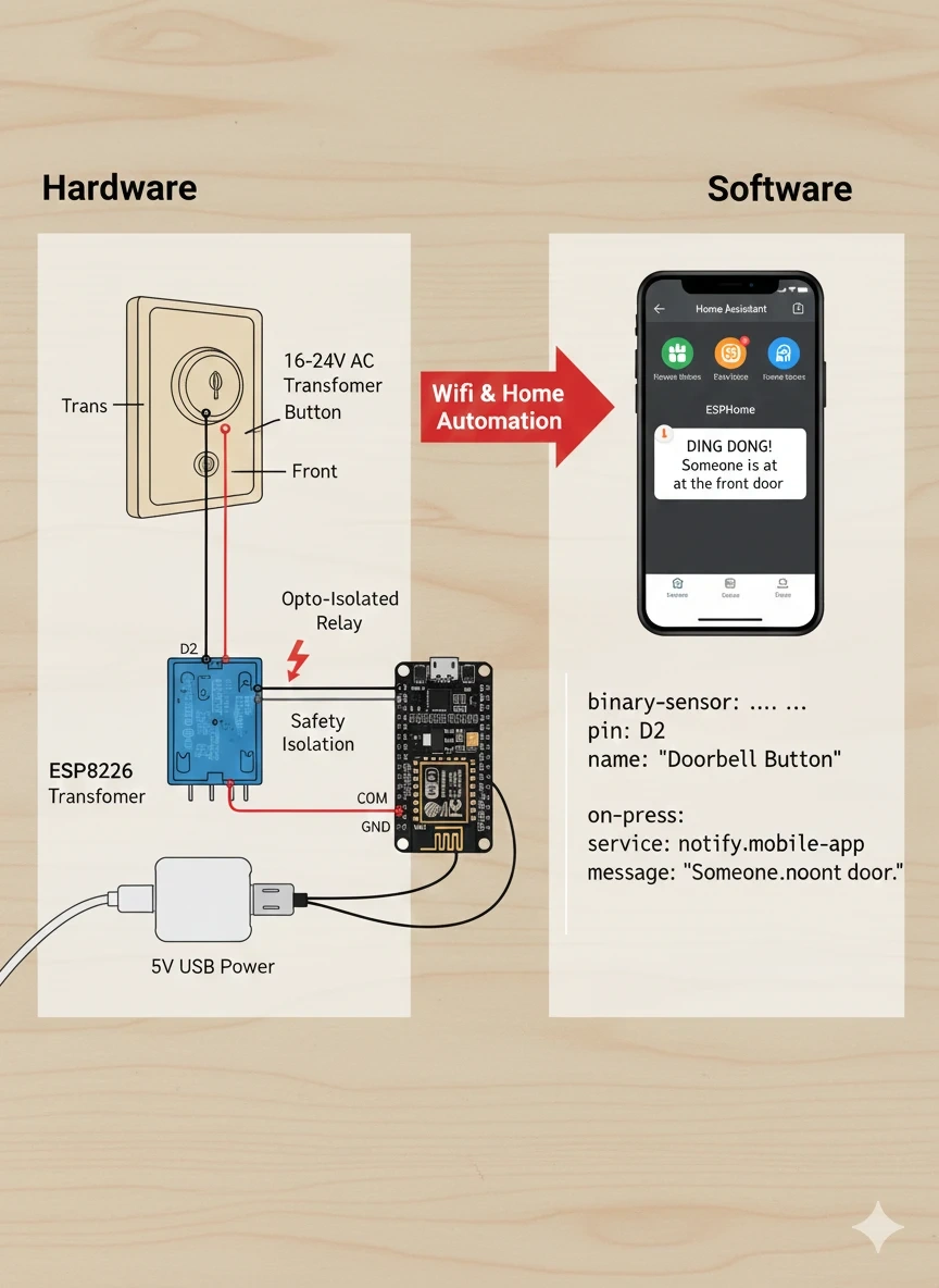 This setup allows you to keep the vintage look and "ding-dong" sound of your original doorbell while adding modern smartphone alerts.