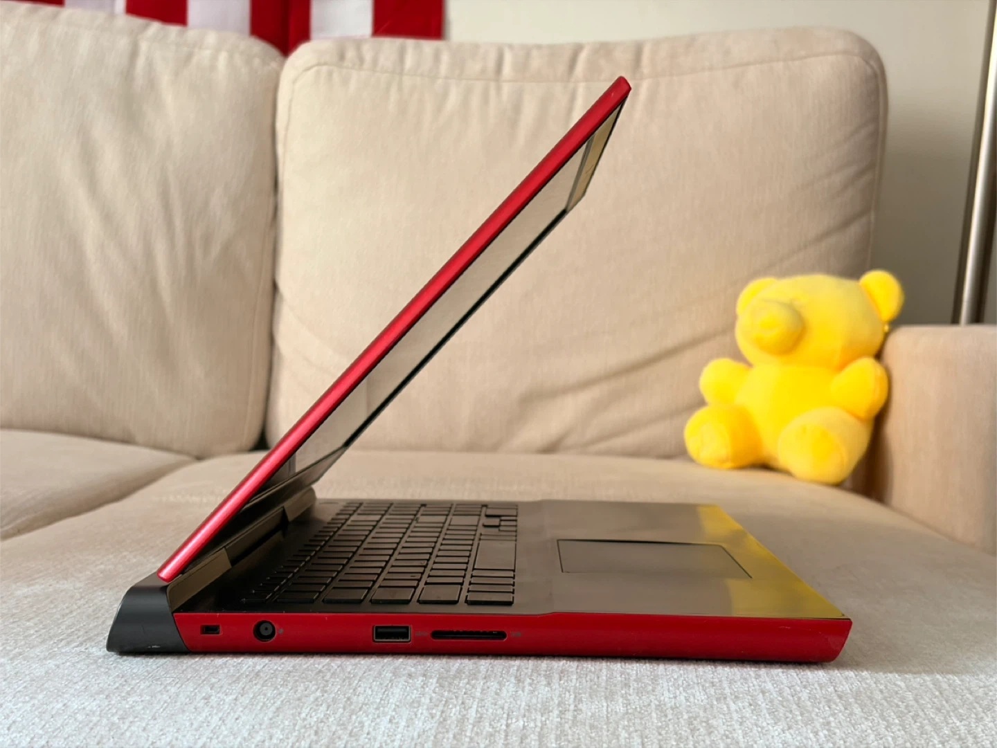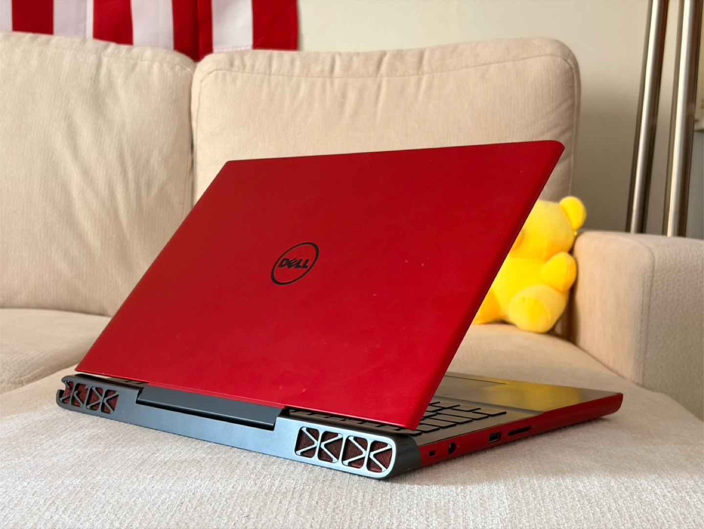 Selling a Dell gaming laptop in red and black. It's in good condition and ready for a new owner!