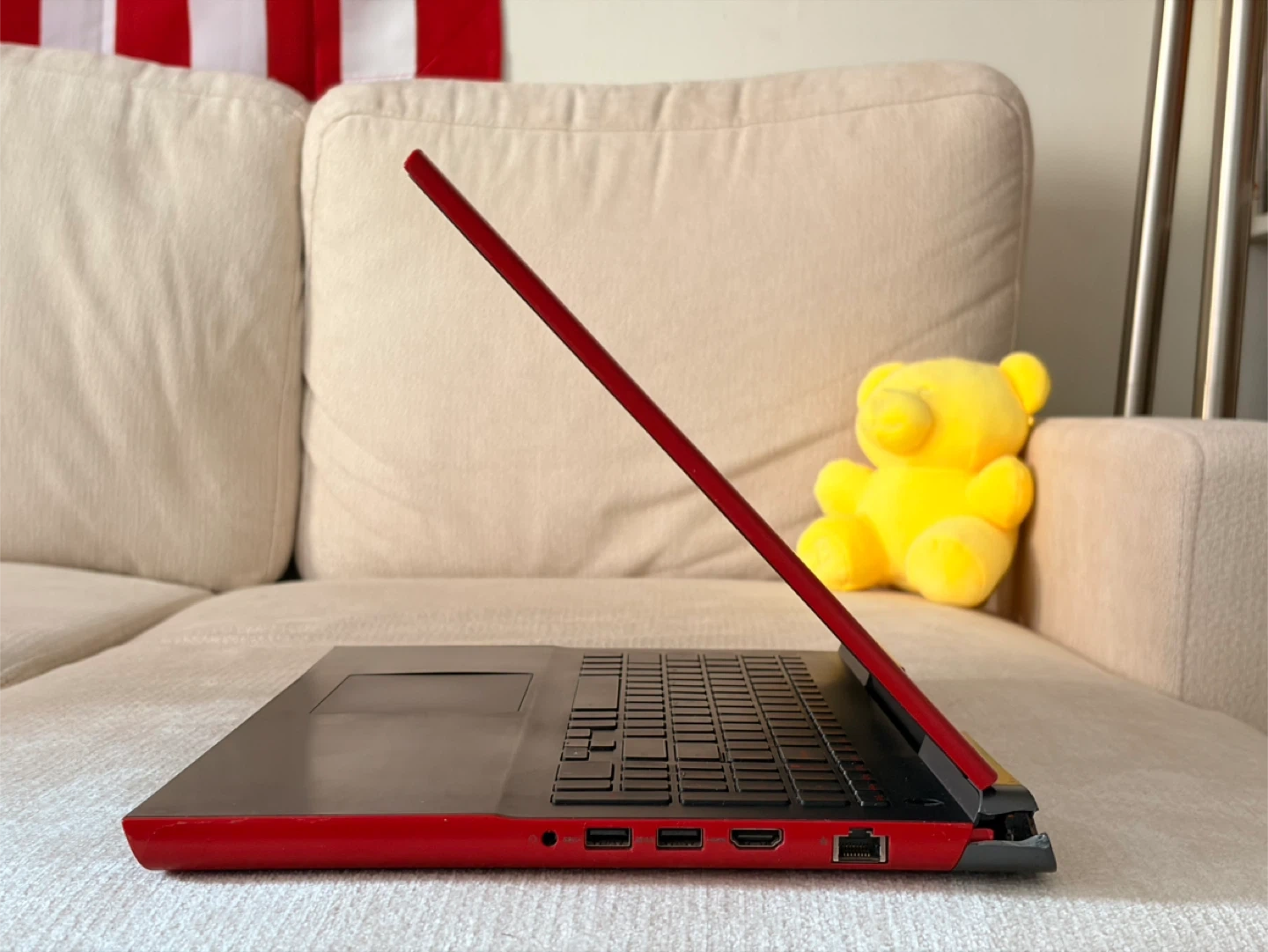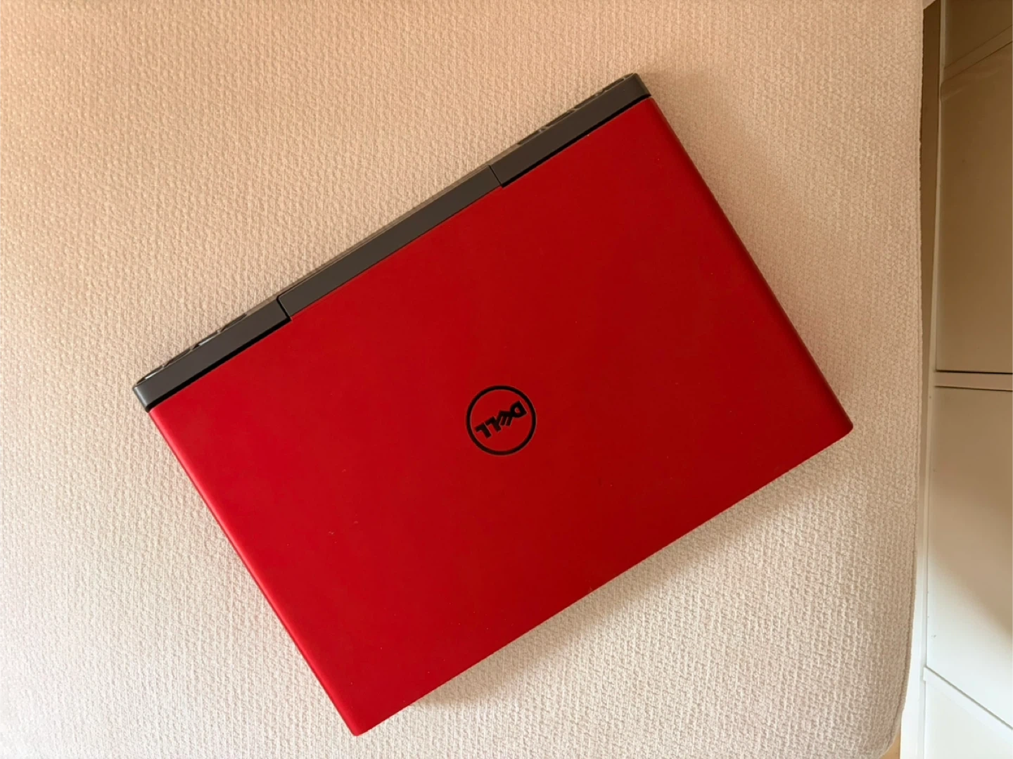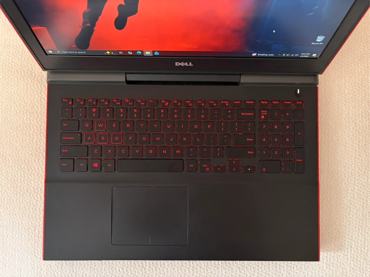 Selling a Dell gaming laptop in red and black. It's in good condition and ready for a new owner!