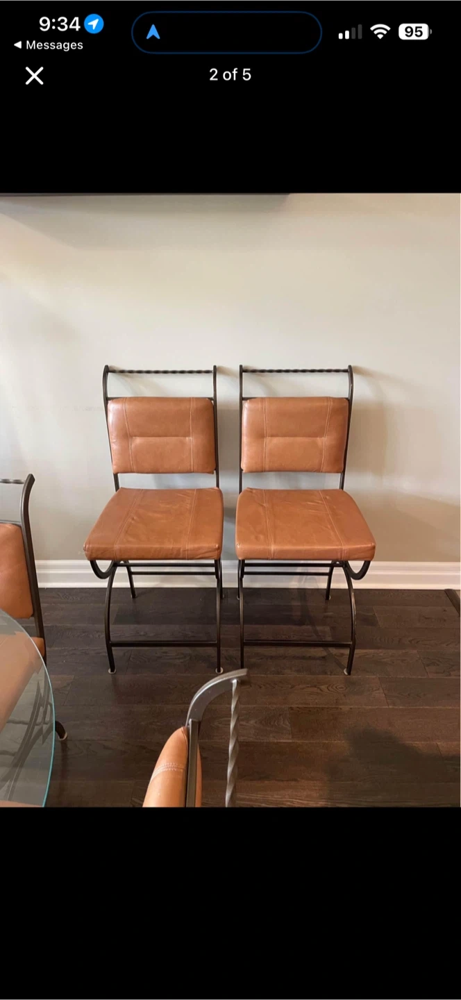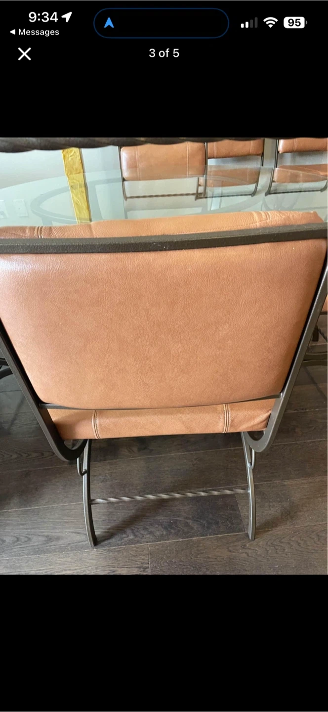 A metal, glass and genuine leather dinette set.