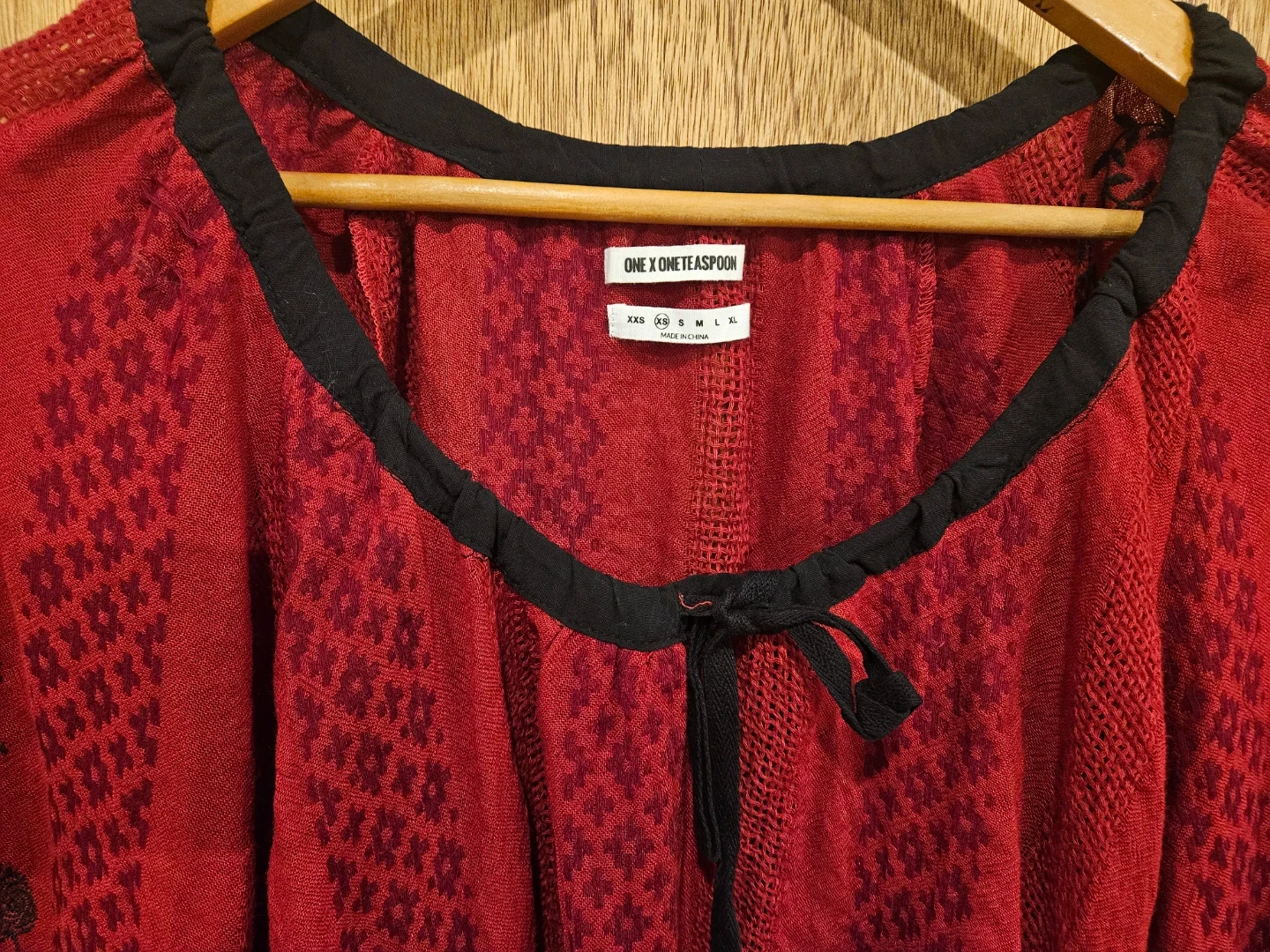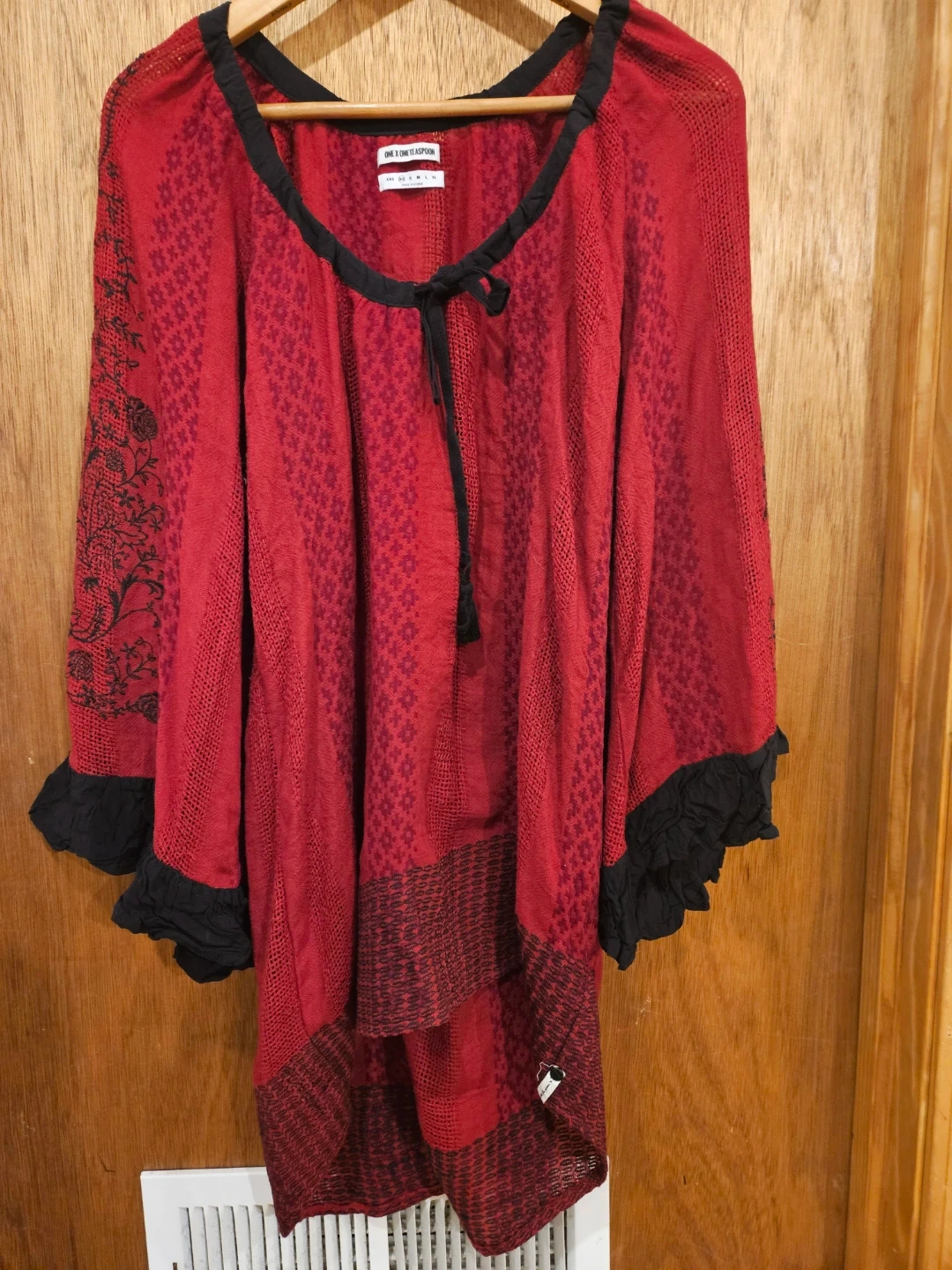 Selling a ONE X ONE TEASPOON tunic top in a beautiful red color! It features a unique pattern and design. The size is XS. It's in great condition and ready for a new owner!