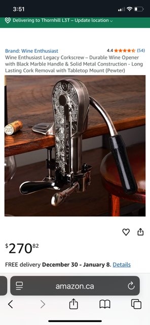 Wine Corkscrew Legacy Antique Bronze Table Top Mount